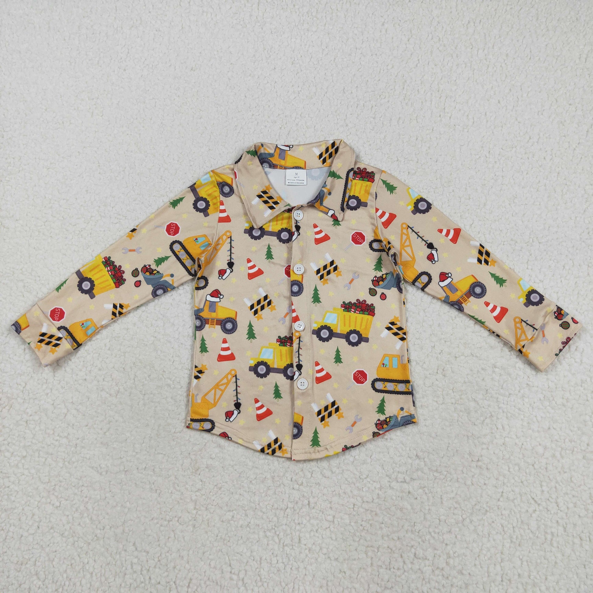 BT1254 Baby Boys Excavators Gifts Trees Button Christmas Shirts Top