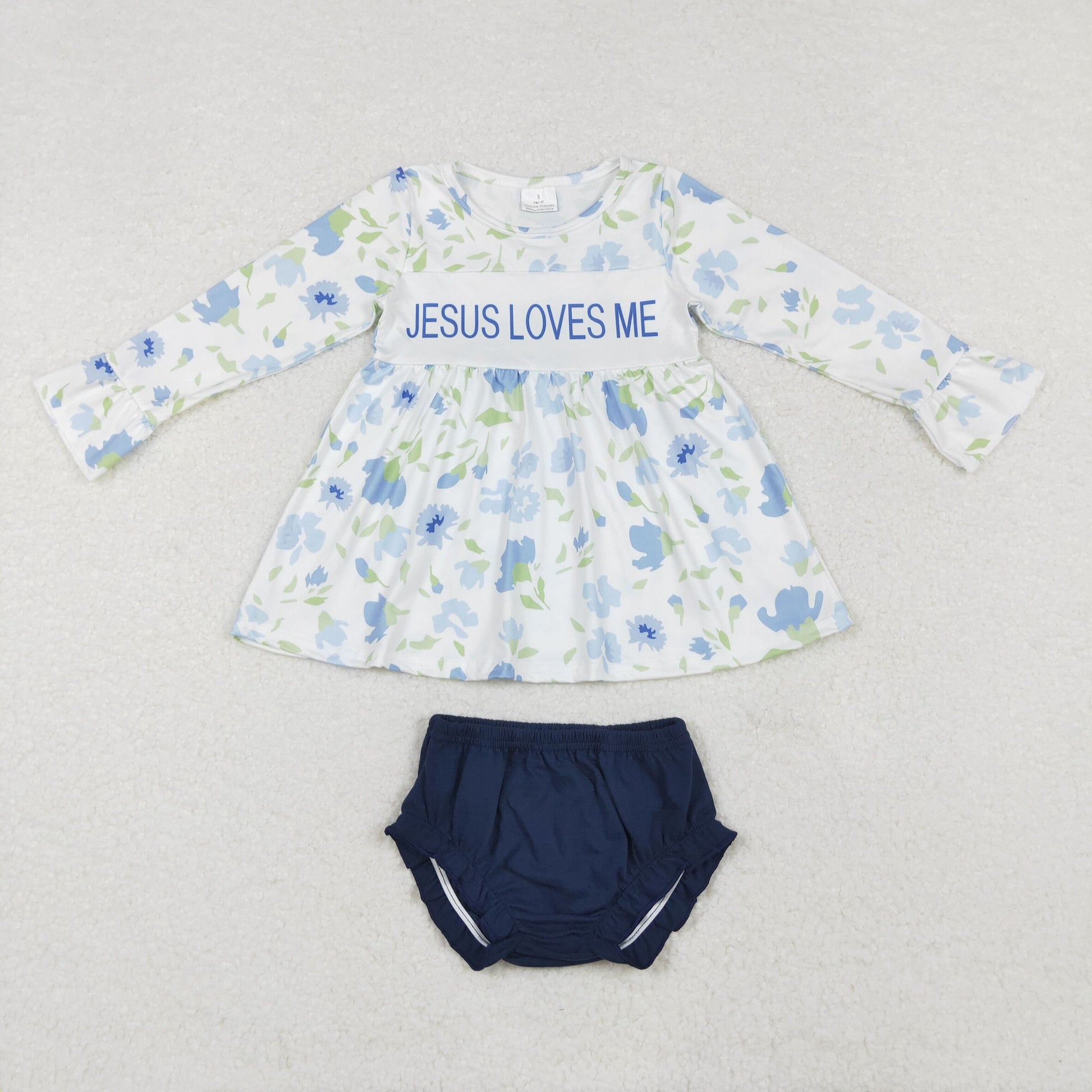 GBO0435 toddler girl clothes jesus loves me girl winter bummies set