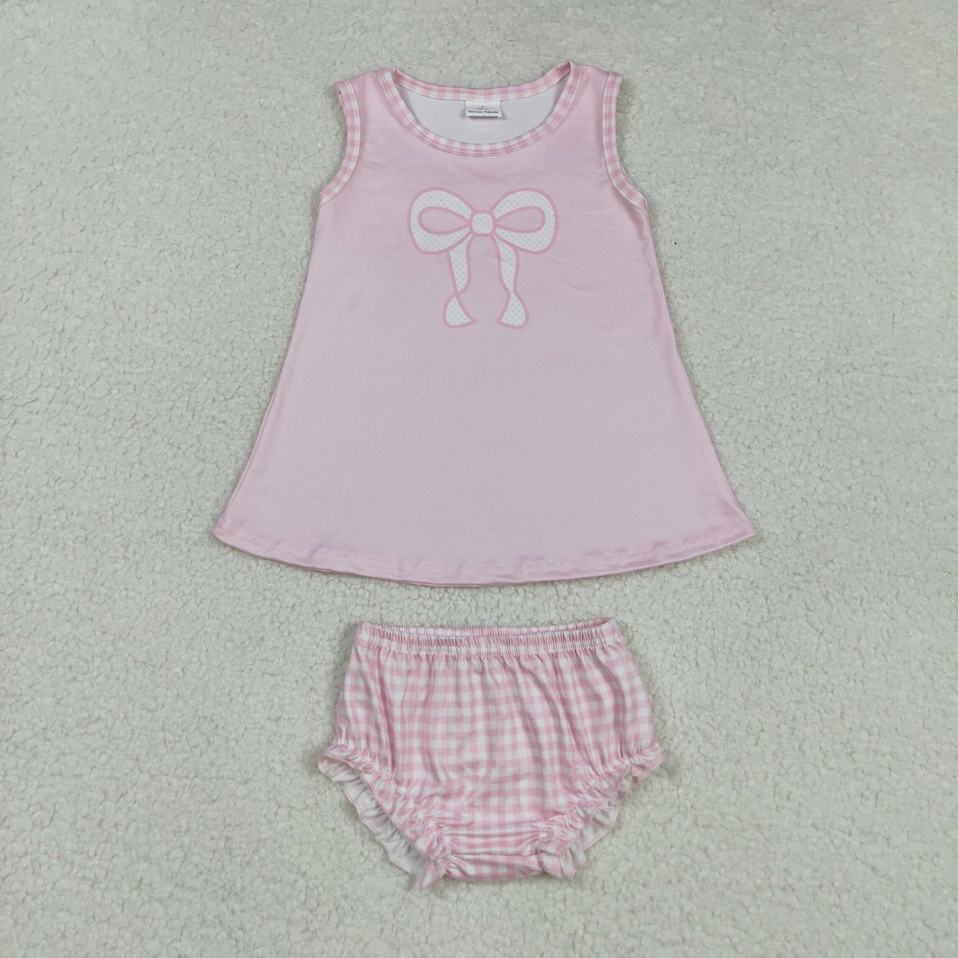 GBO0469 Baby Girls Pink Sleeveless Bows Tunic Ruffle Bummies Clothes Sets