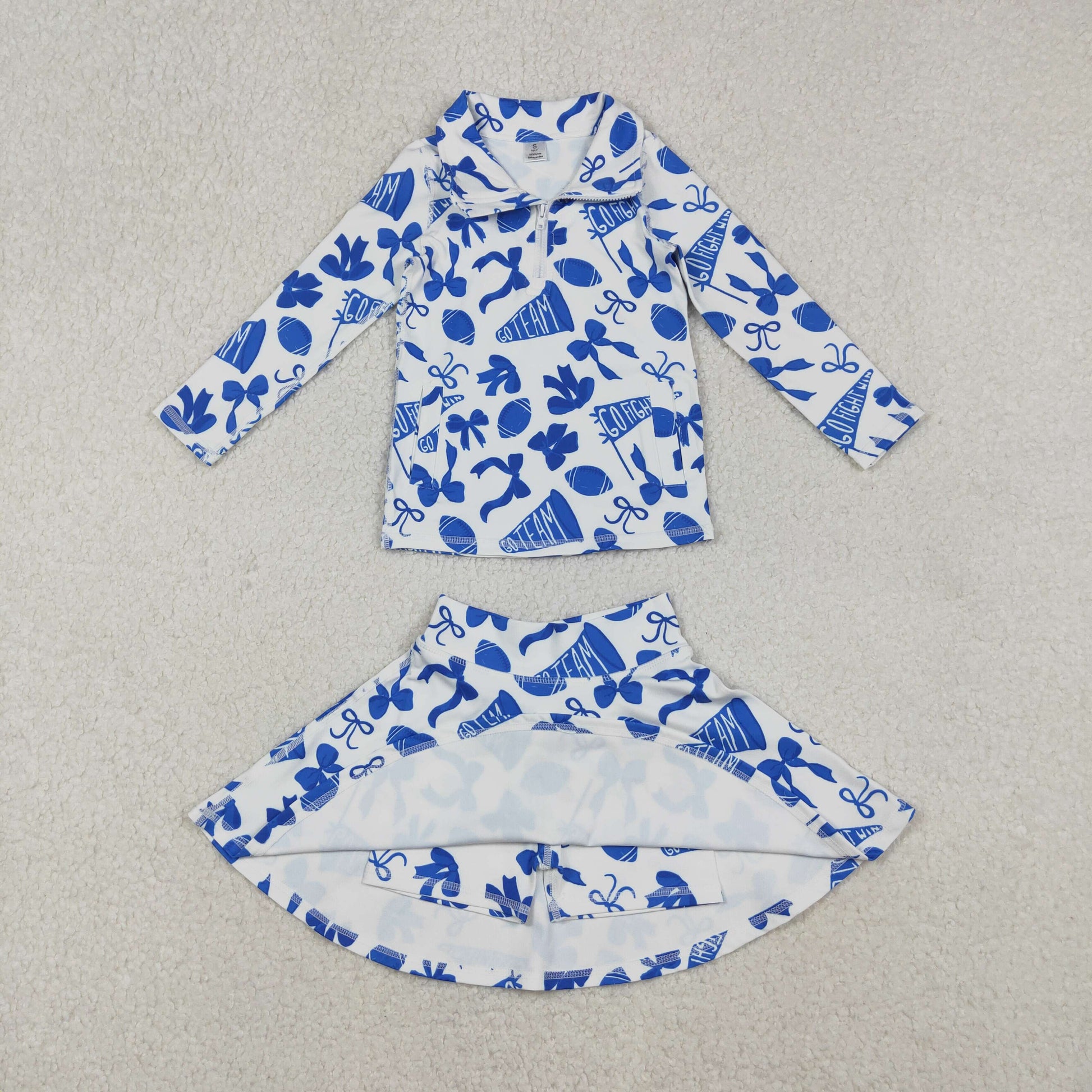GLD1283 Baby Girls Blue Footballs Zipper Pullovers Skirt Shorts Team Yoga Active Clothes Set
