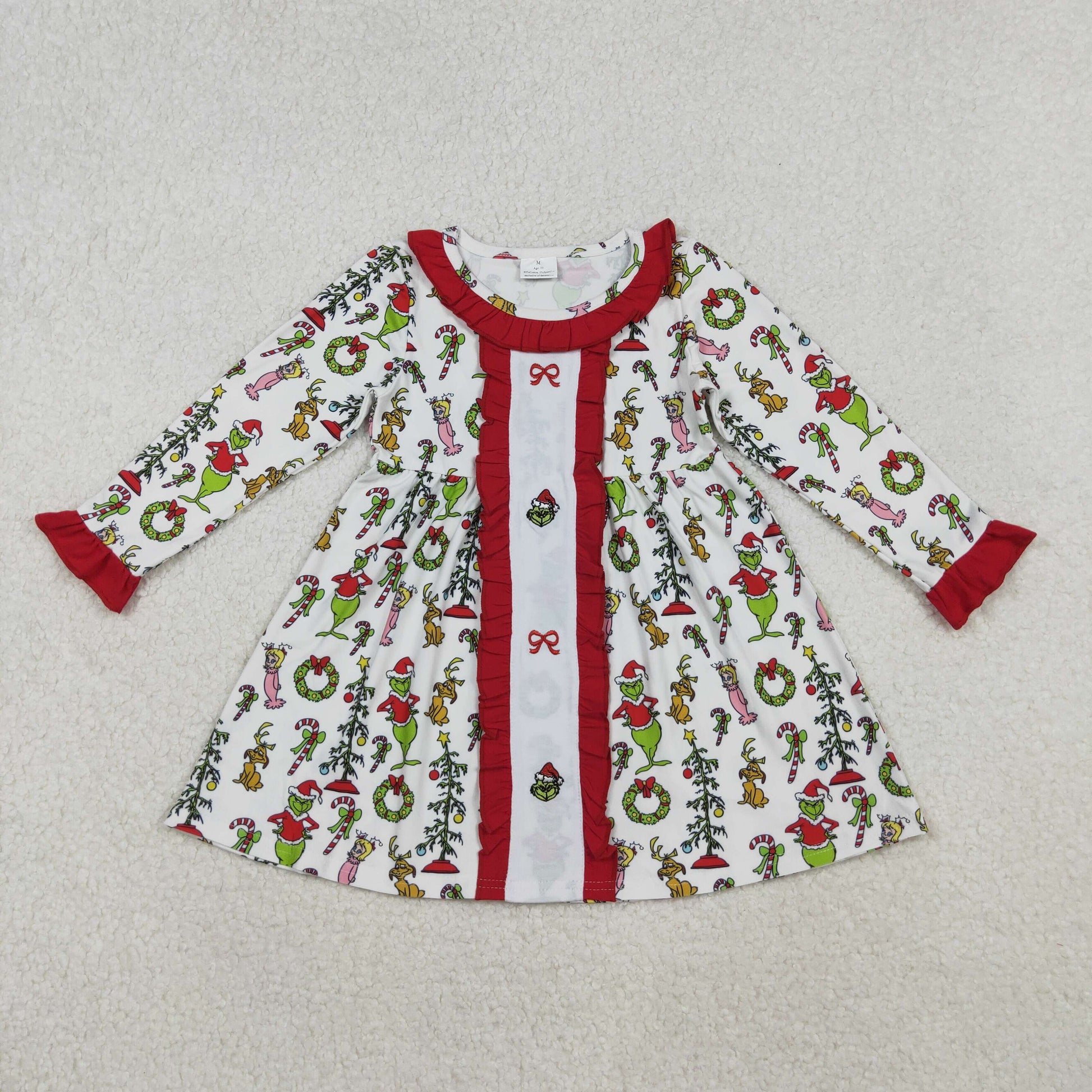 GLD1289 Baby Girls Embroidery Bows Grin Christmas Ruffle Collar Knee Length Dresses