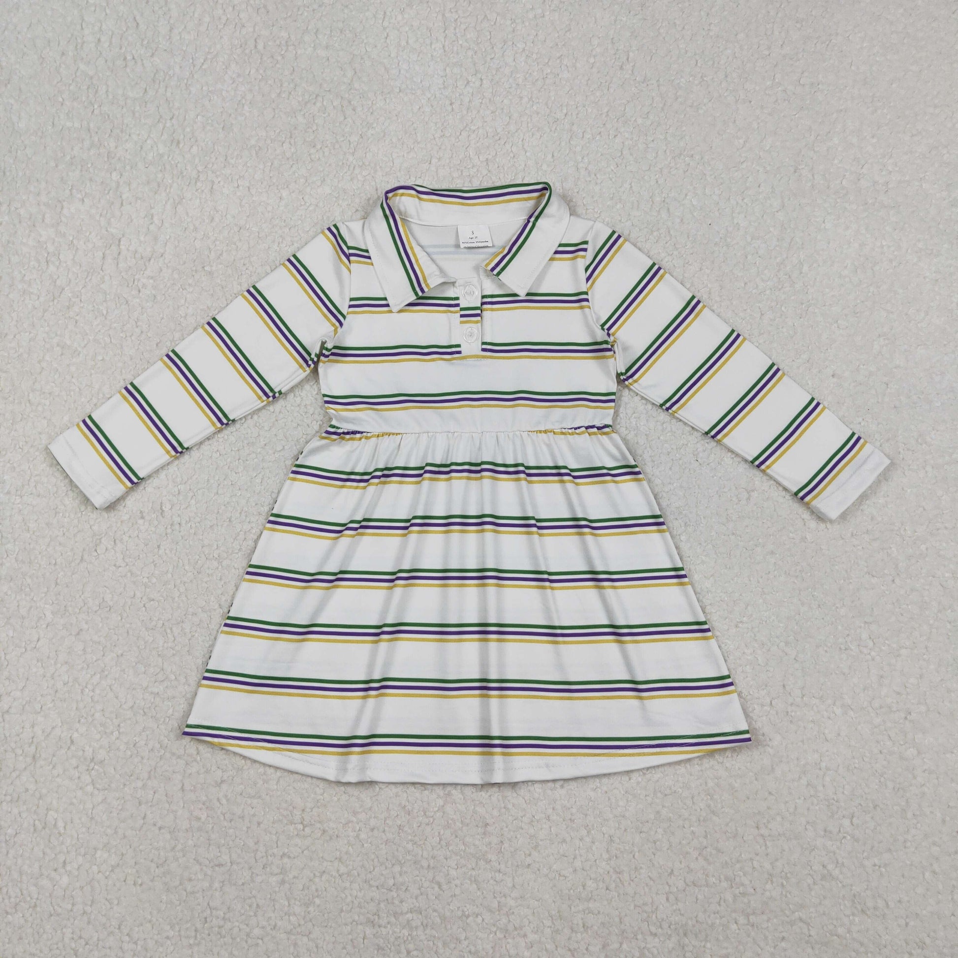 GLD1331 Baby Girls Mardigras Stripes Button Knee Length Dresses