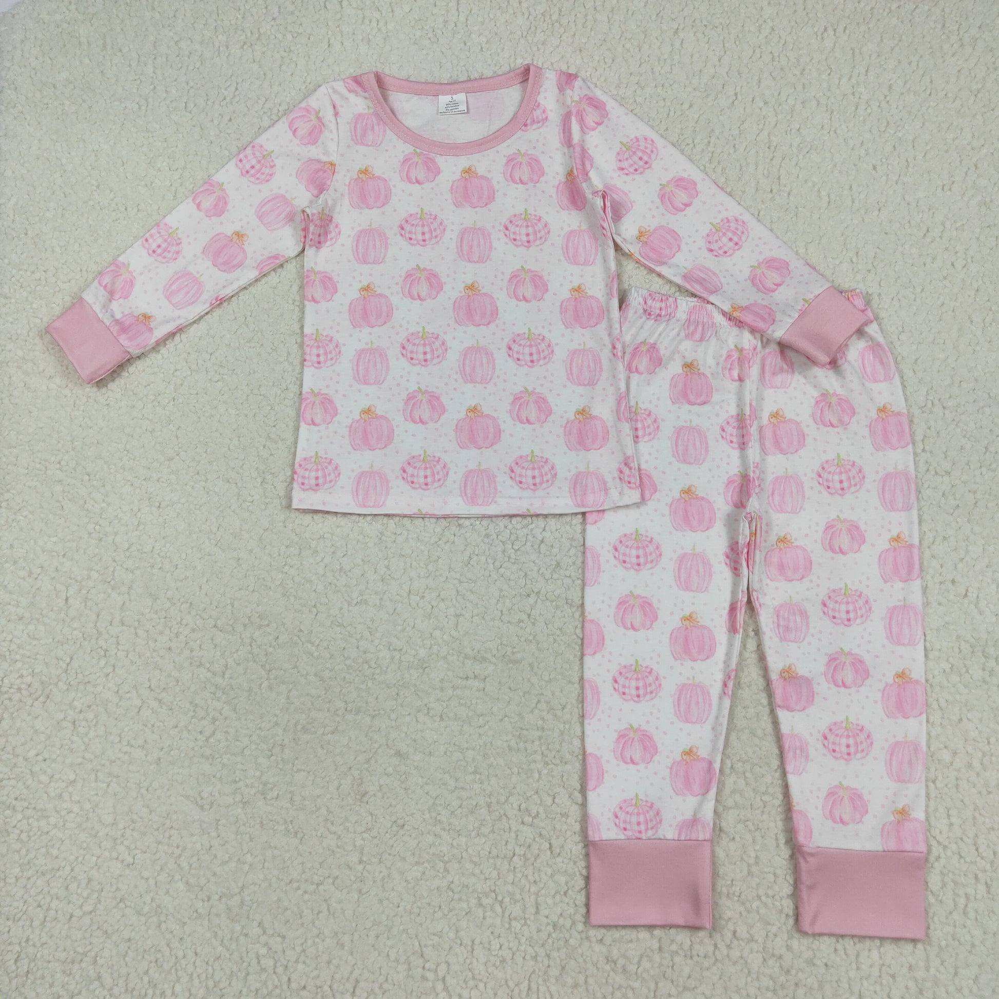 GLP1188 Bamboo Baby Girls Pink Pumpkins Plaid Top Pants Fall Pajamas Sets