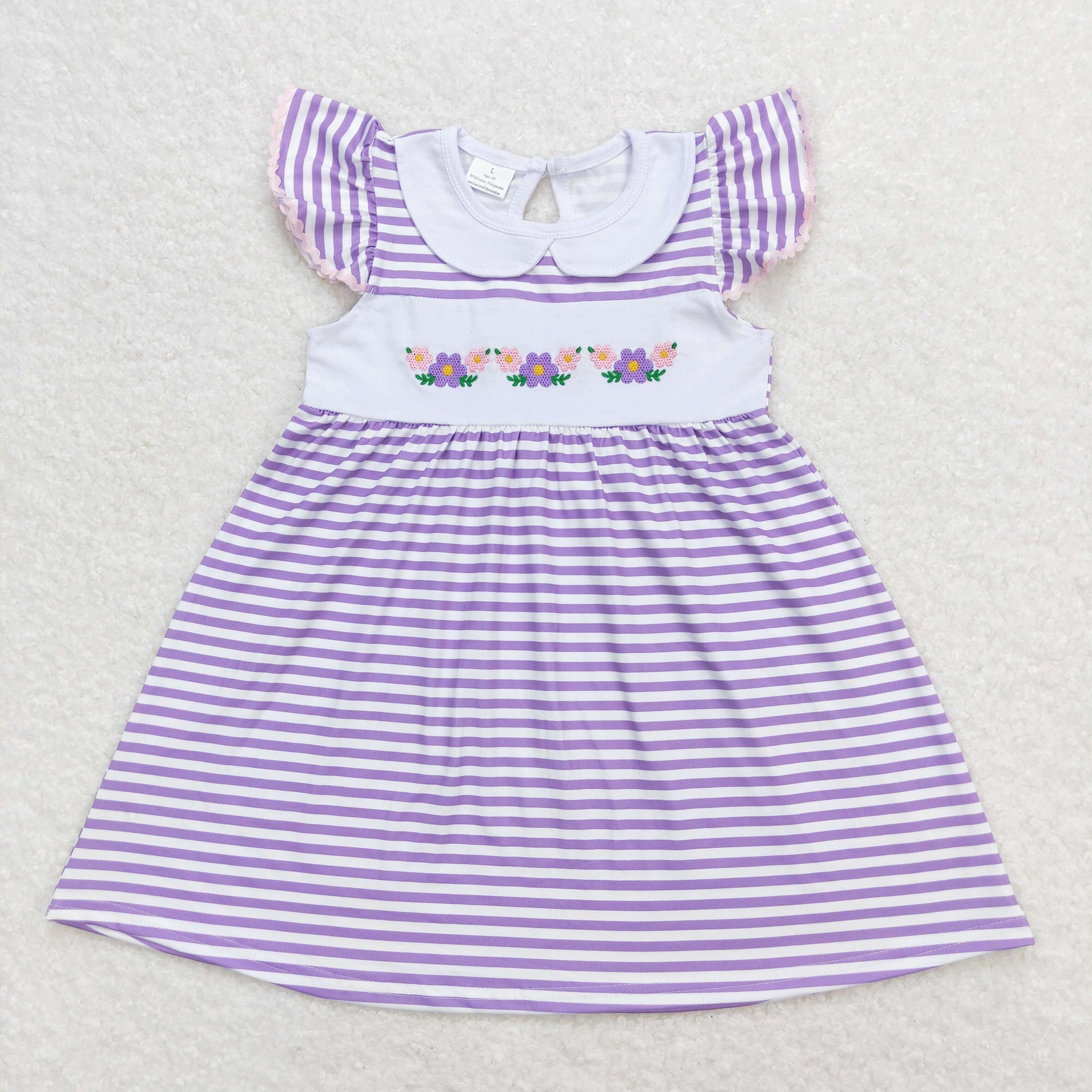 GSD0836 baby girl clothes embroidery purple flowers print girl summer dress