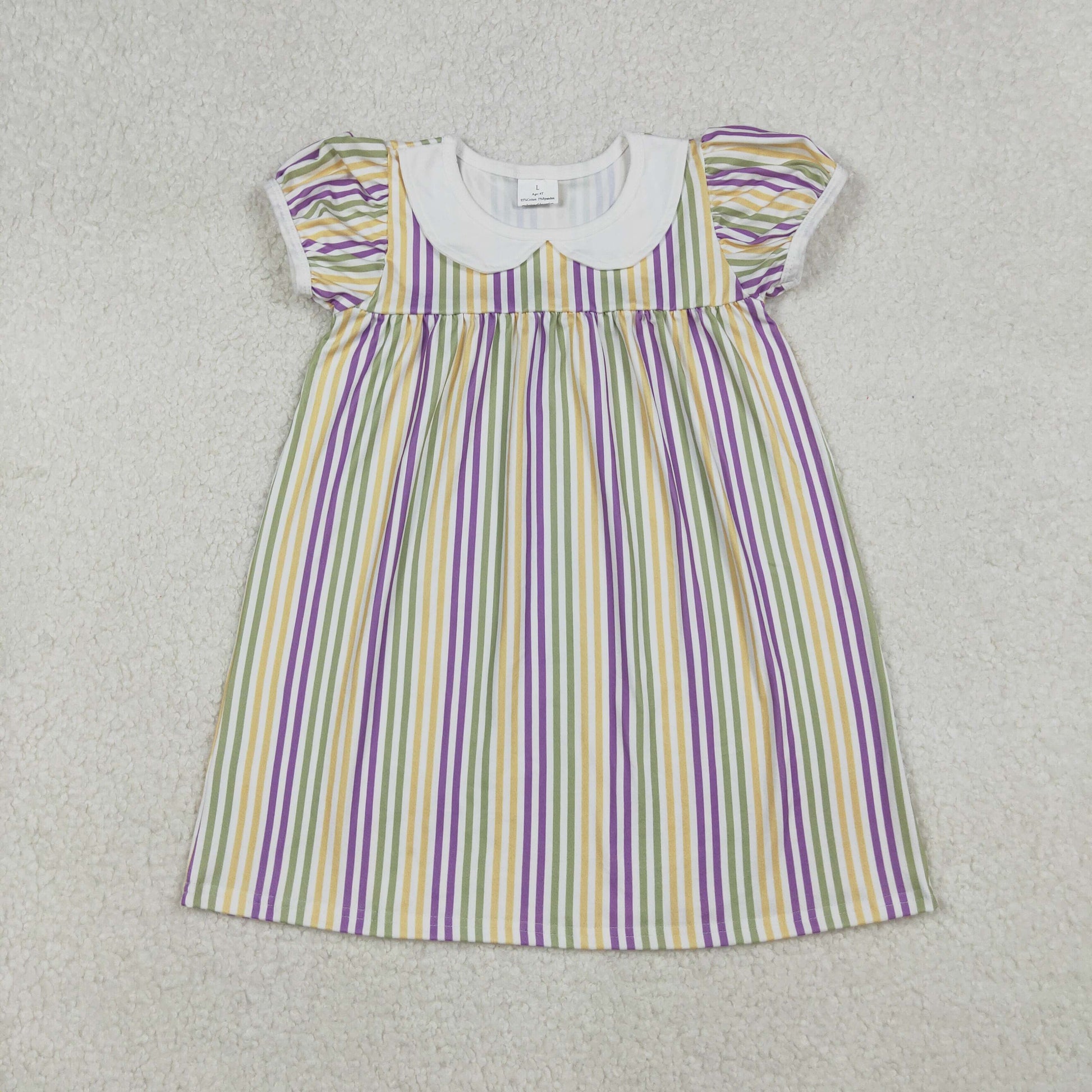 GSD1571 Baby Girls Mardigras Stripes Short Ruffle Sleeve Collar Knee Length Dresses