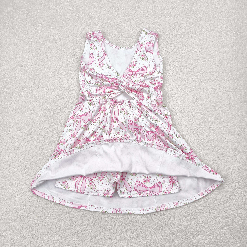 GSD2199 toddler girl clothes pink flowers Bows athletic summer yoga dresses