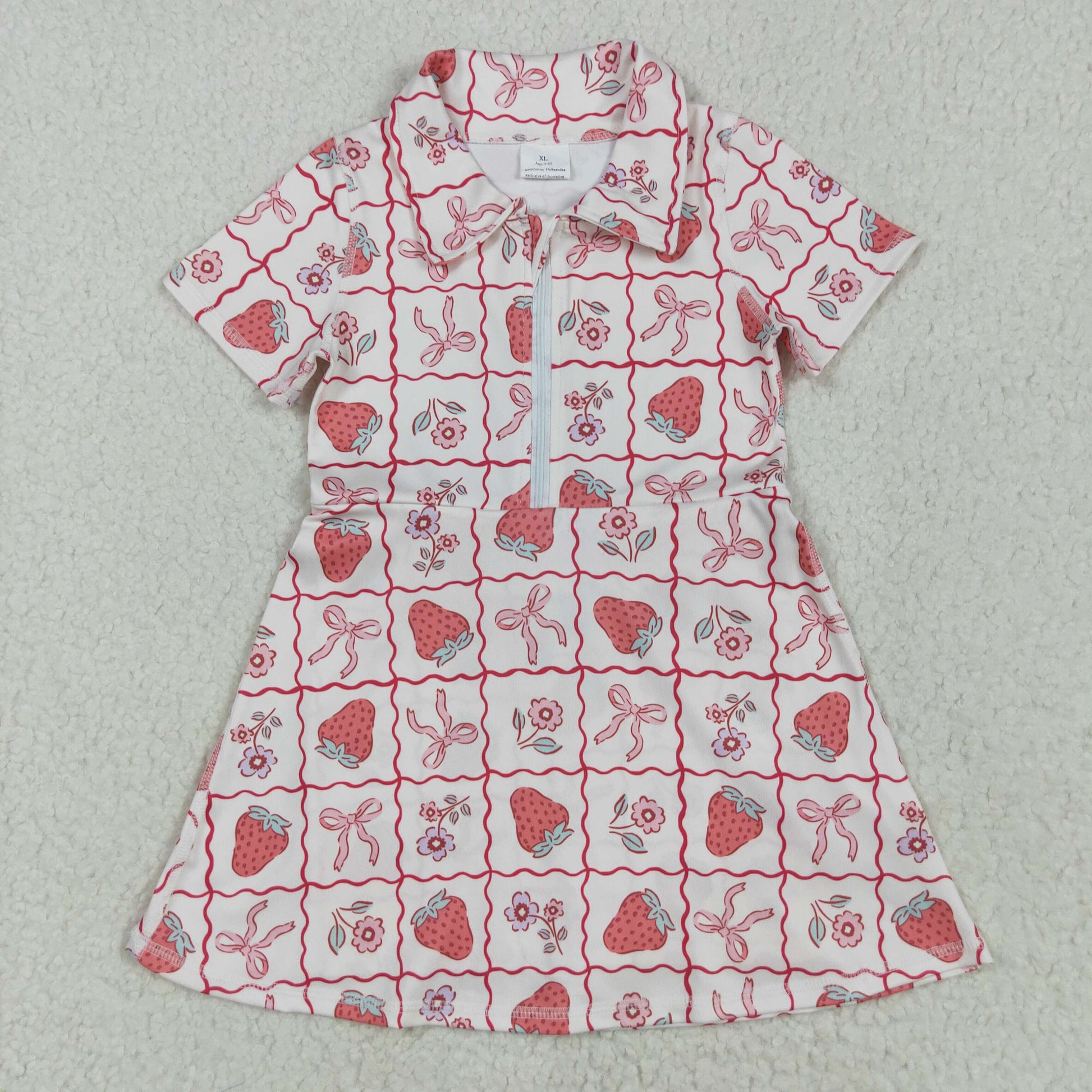 GSD2407 Baby Girls Pink Strawberry Checked Yoga Active Zipper Shorts Knee Length Dresses