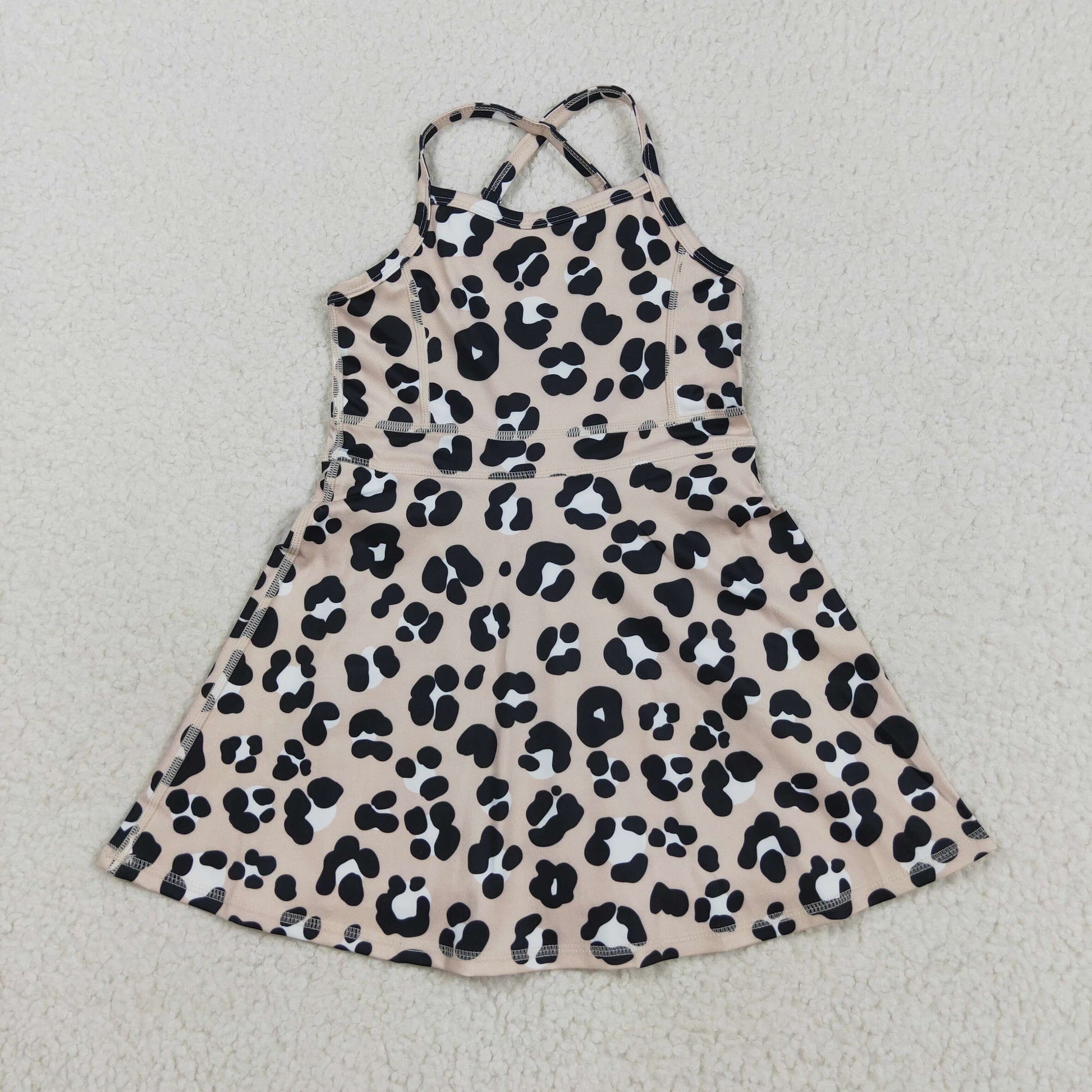 GSD2650 Baby Girls Strap Black Leopard Shorts Yoga Active Knee Length Dresses