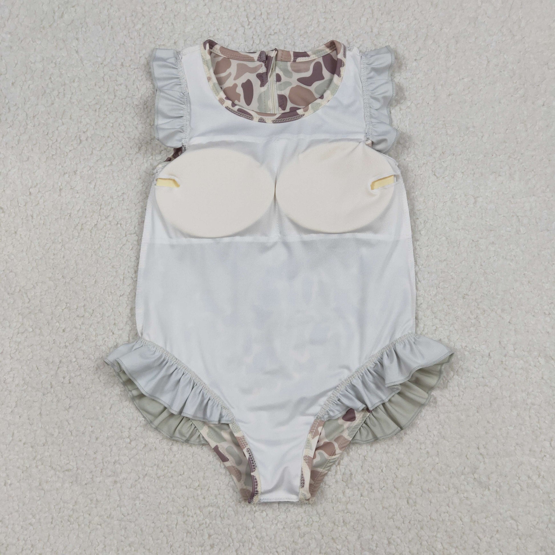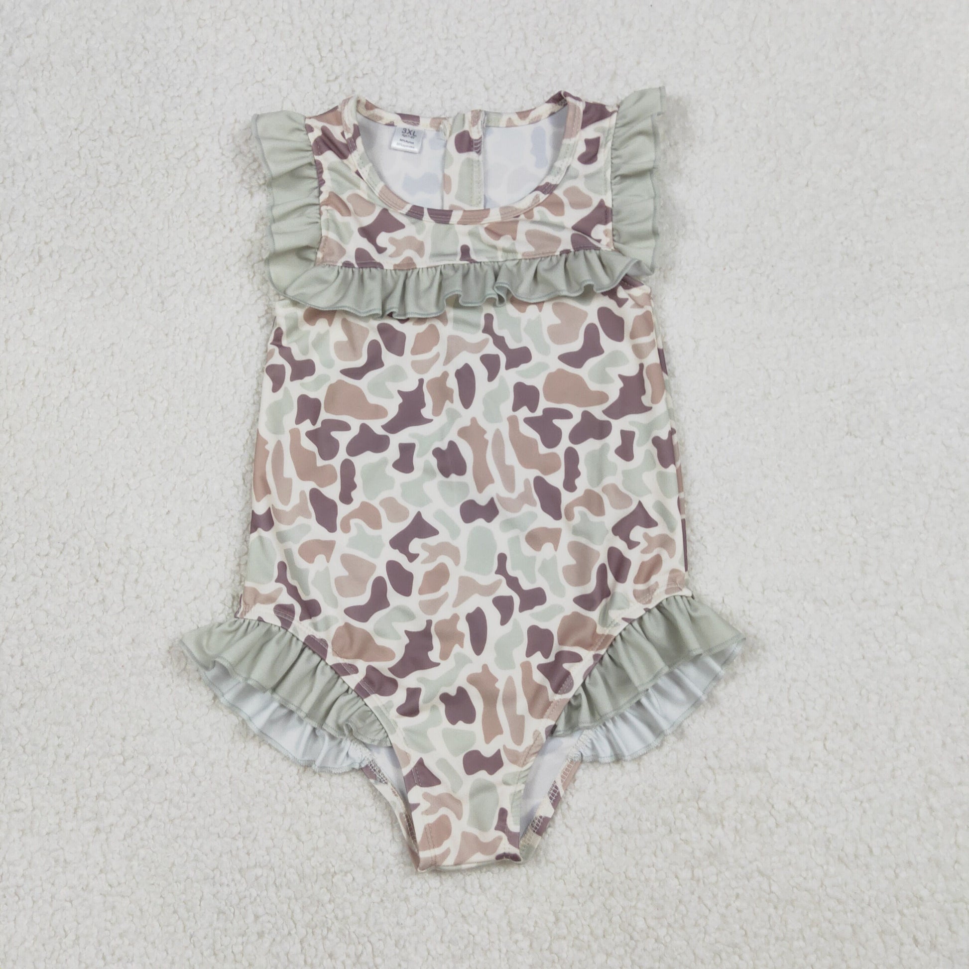 S0595 Baby Girls Sleeveless Southern Khak Camo Ruffle Swimsuits