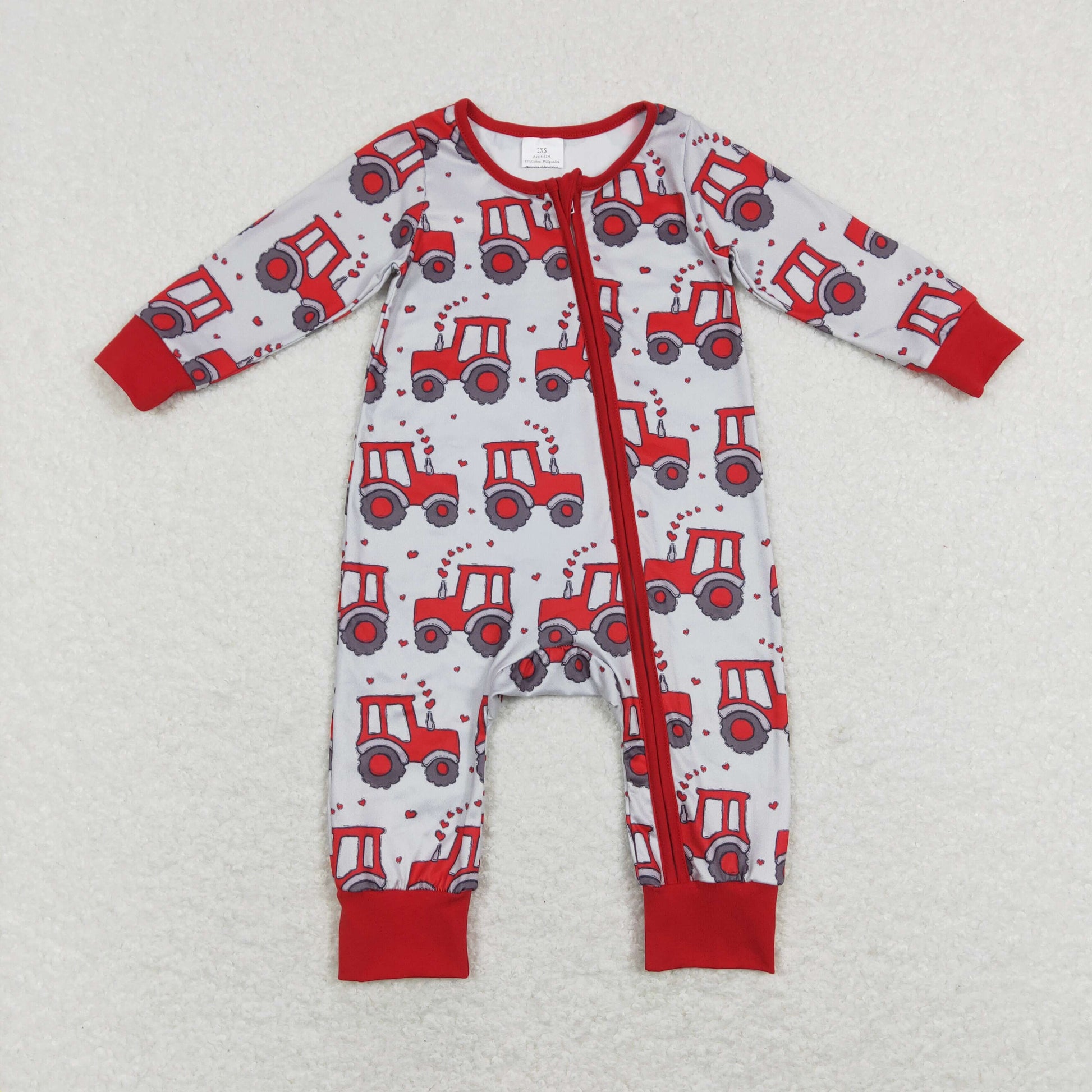 Sibling Baby Boys Hearts Trucks Top Pants Valentine Pajamas Sets Zipper Footie Rompers