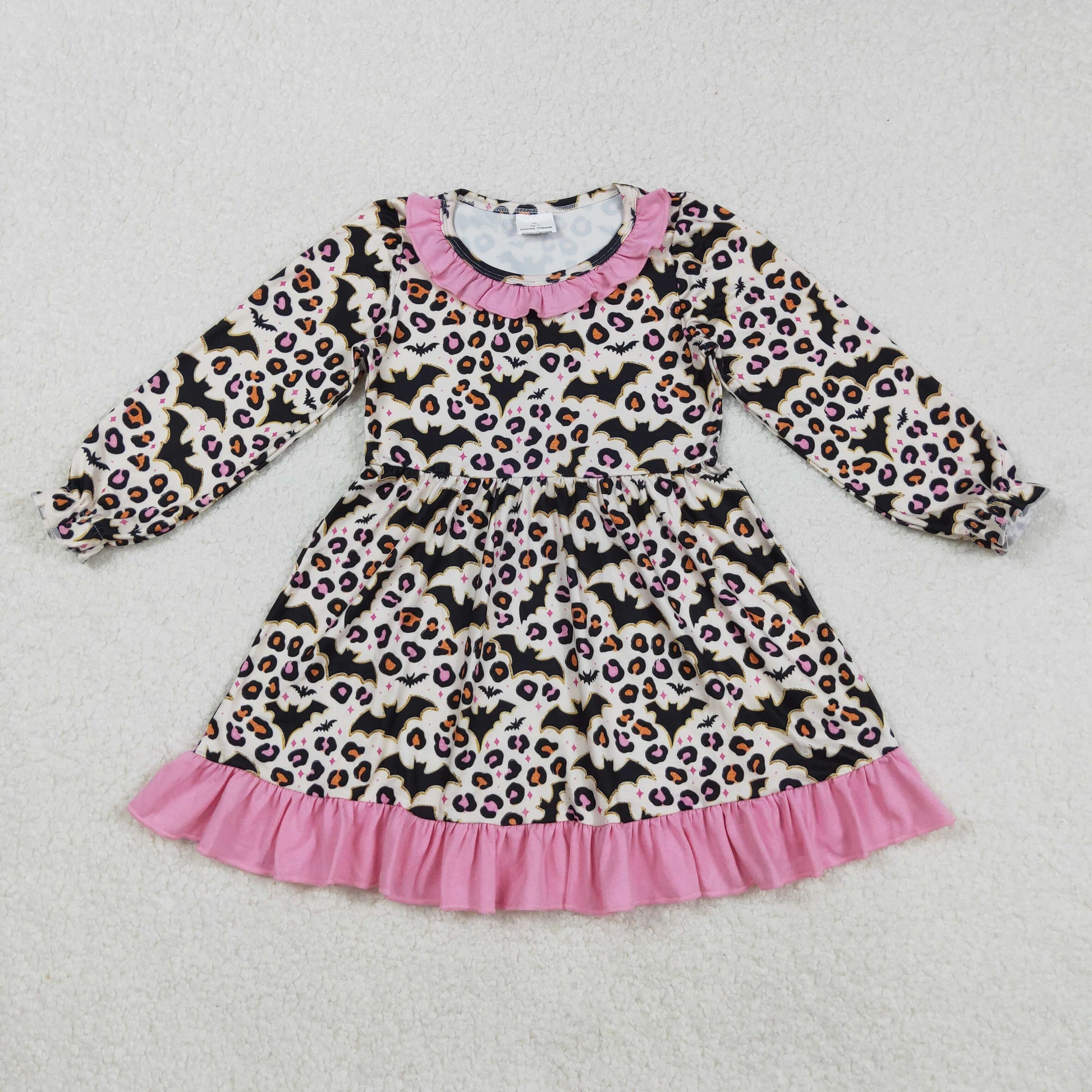 Sibling Baby Girls Bats Leopard Halloween Ruffle Knee Length Dresses Romper