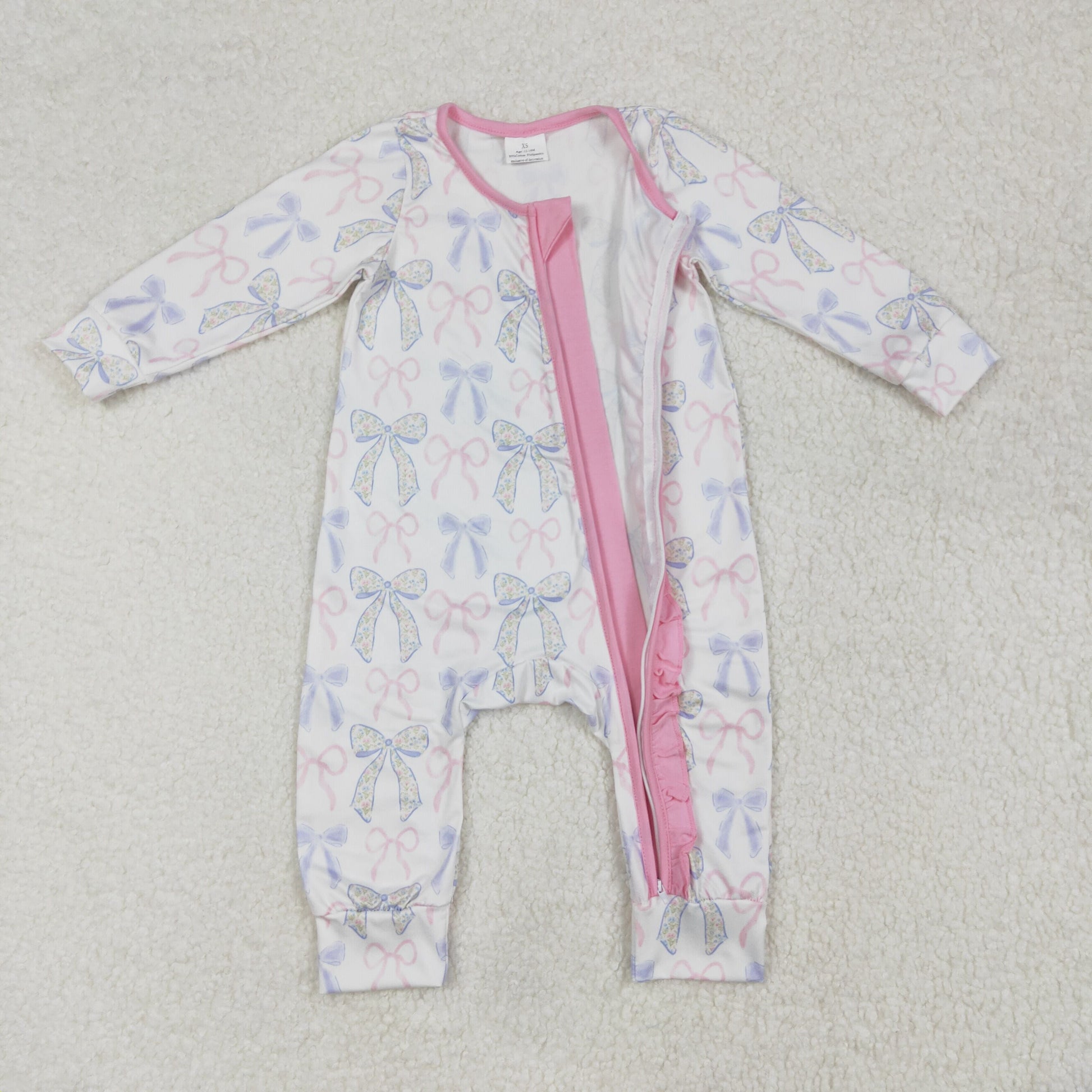 Sibling Baby Girls Floral Bows Plaid Ruffle Zipper Footie Rompers Blankets