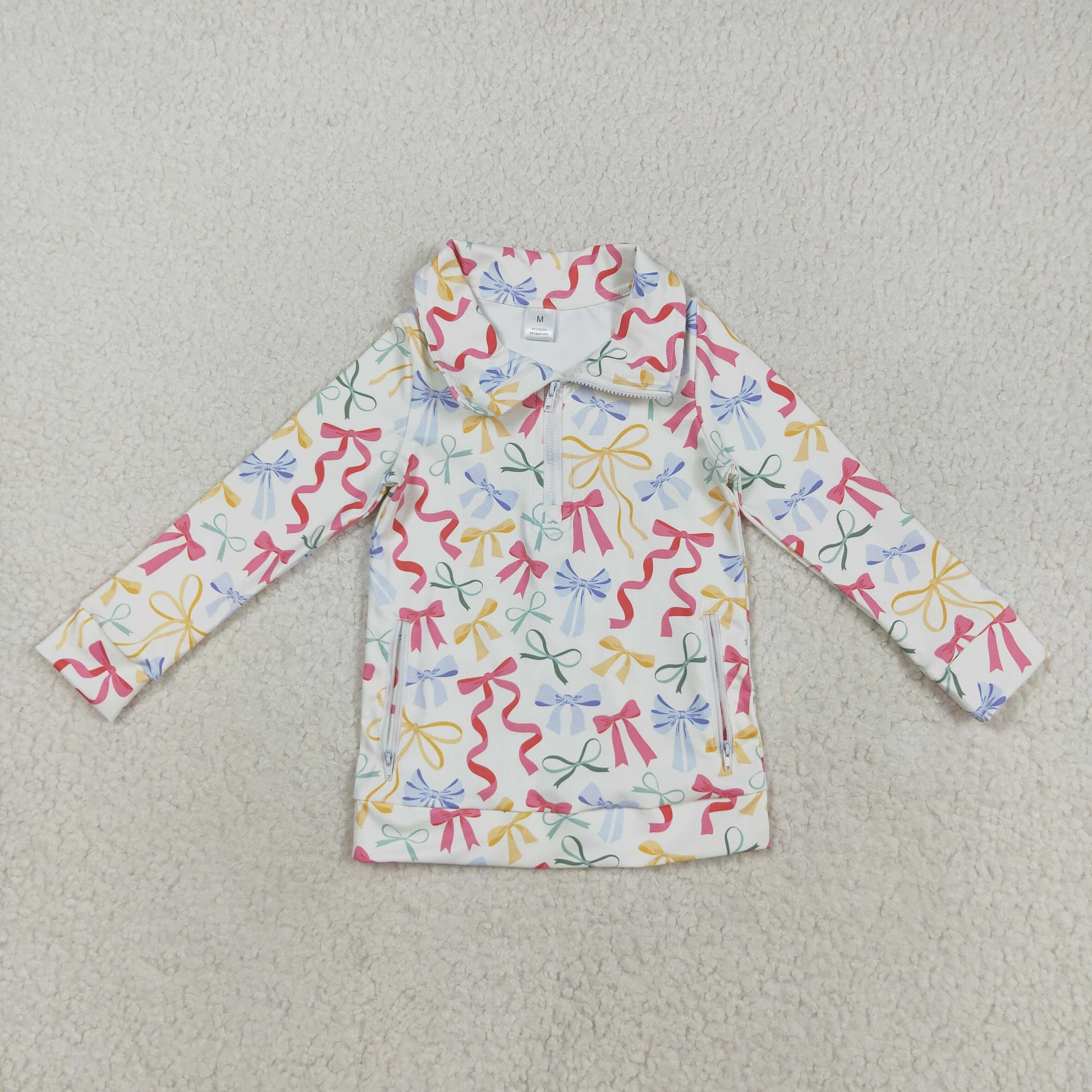 Sibling Baby Girls Flowers Bows Pockets Zipper Yoga Active Pullovers Top