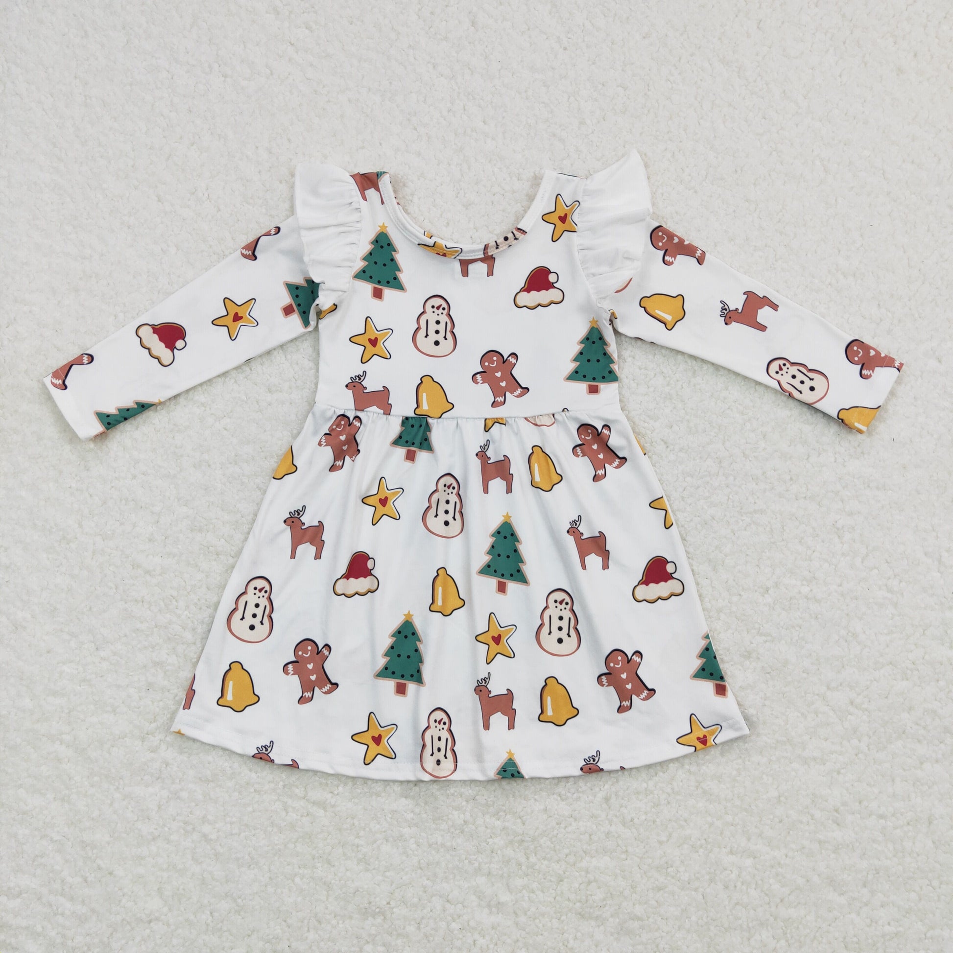 Sibling Baby Girls Gingerbread Candy Cane Christmas Ruffle Knee Length Dresses