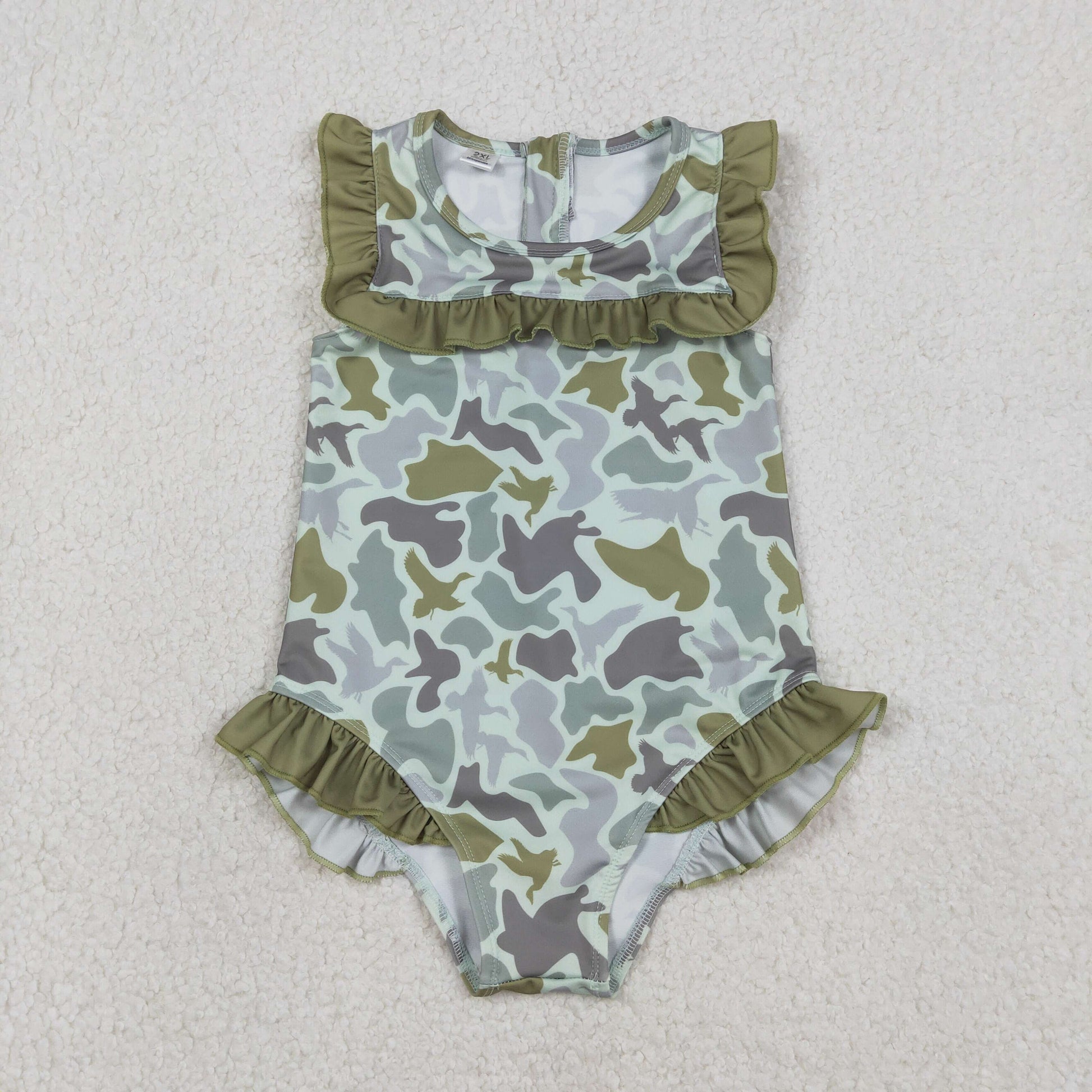 Sibling Baby Girls Southern Hunting Camo Ruffle Swimming Swimsuits