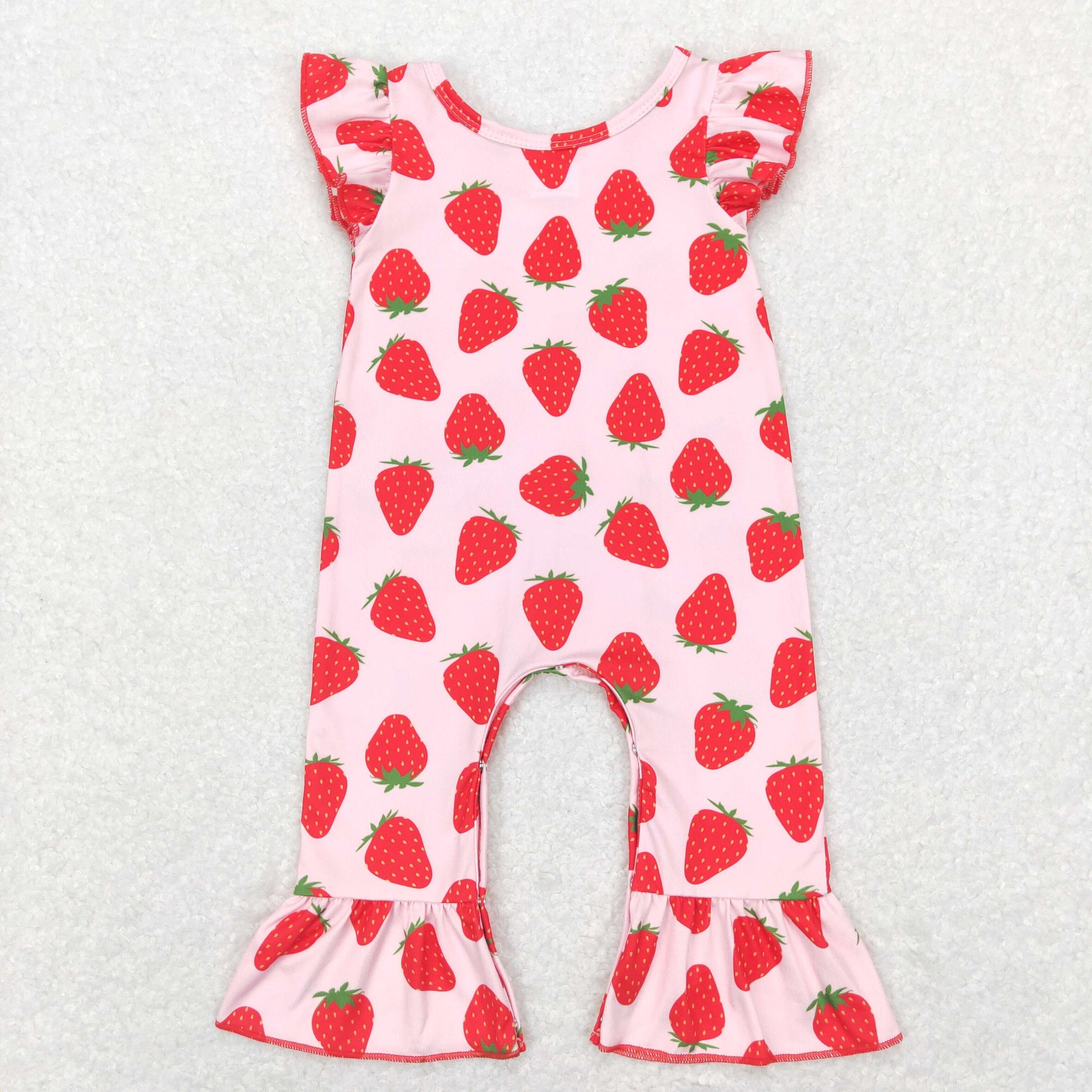 Sibling Baby Girls Strawberry Flowers Top Bell Bottom Pants Clothes Sets Rompers