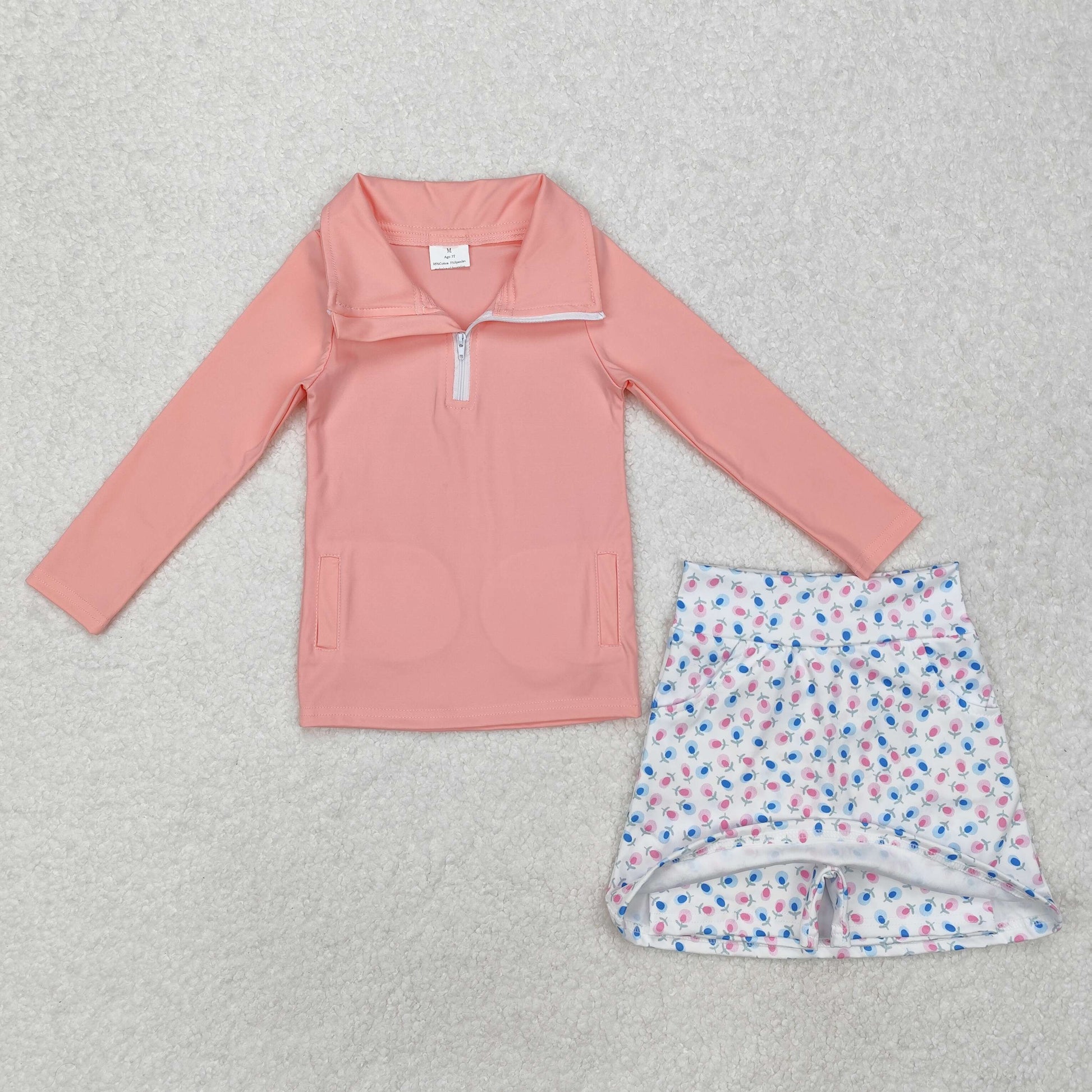 Sibling Baby Girls Zipper Pullovers Shirts Top Floral Skorts Yoga Sets