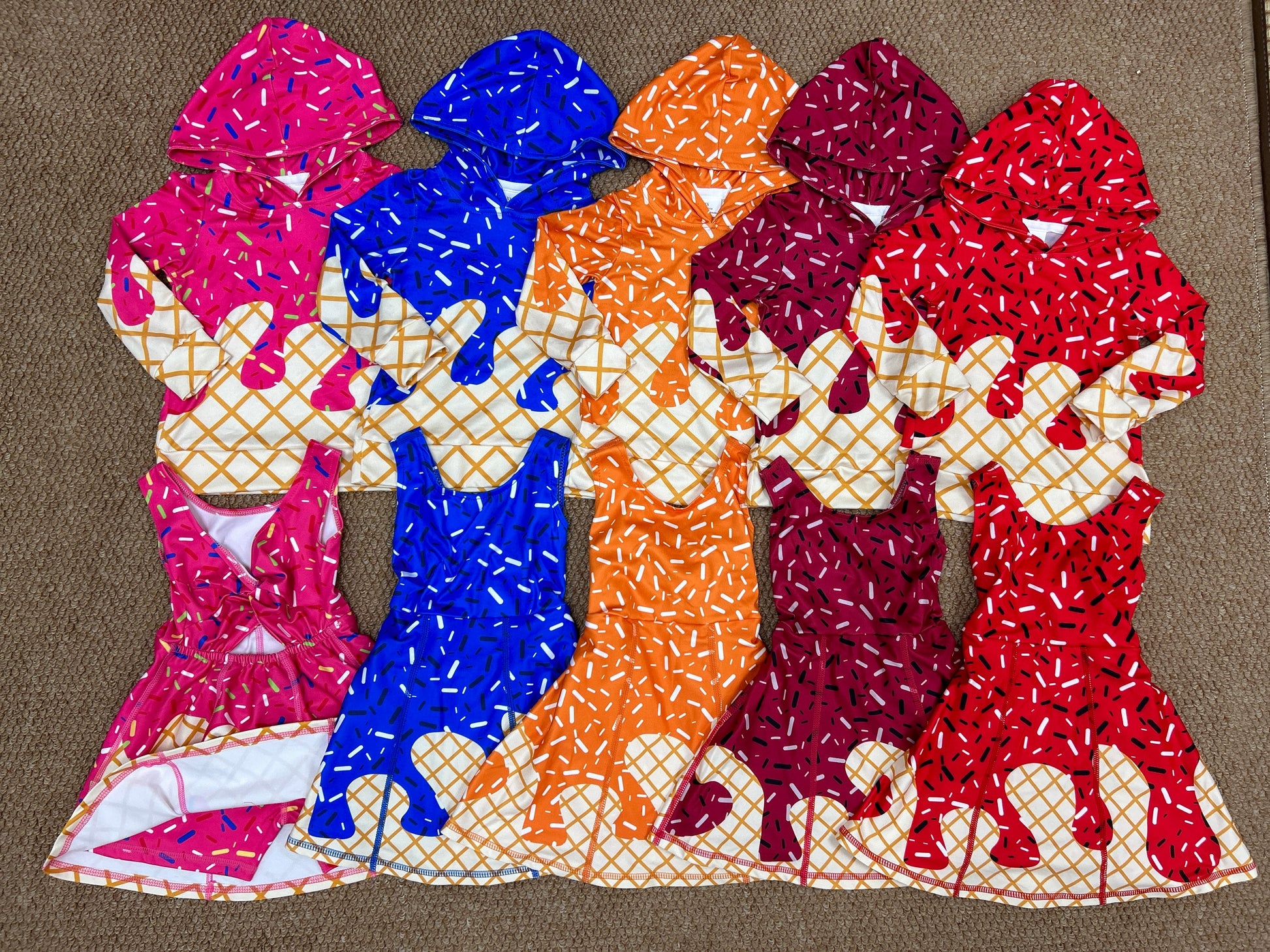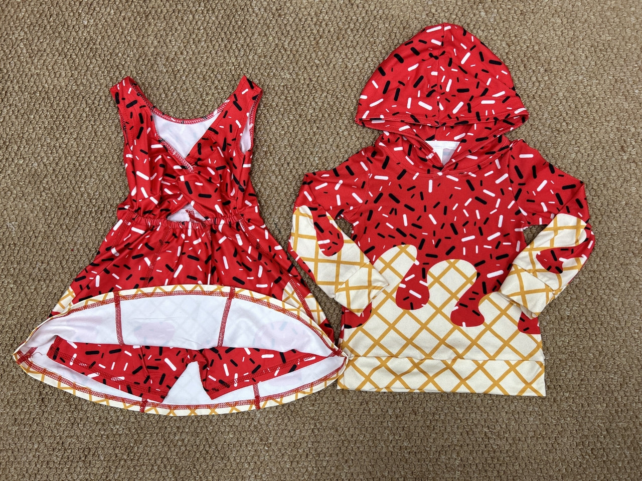 Sibling Baby Kids Red Drip Team Hoodies Top Yoga Short Knee Length Dresses