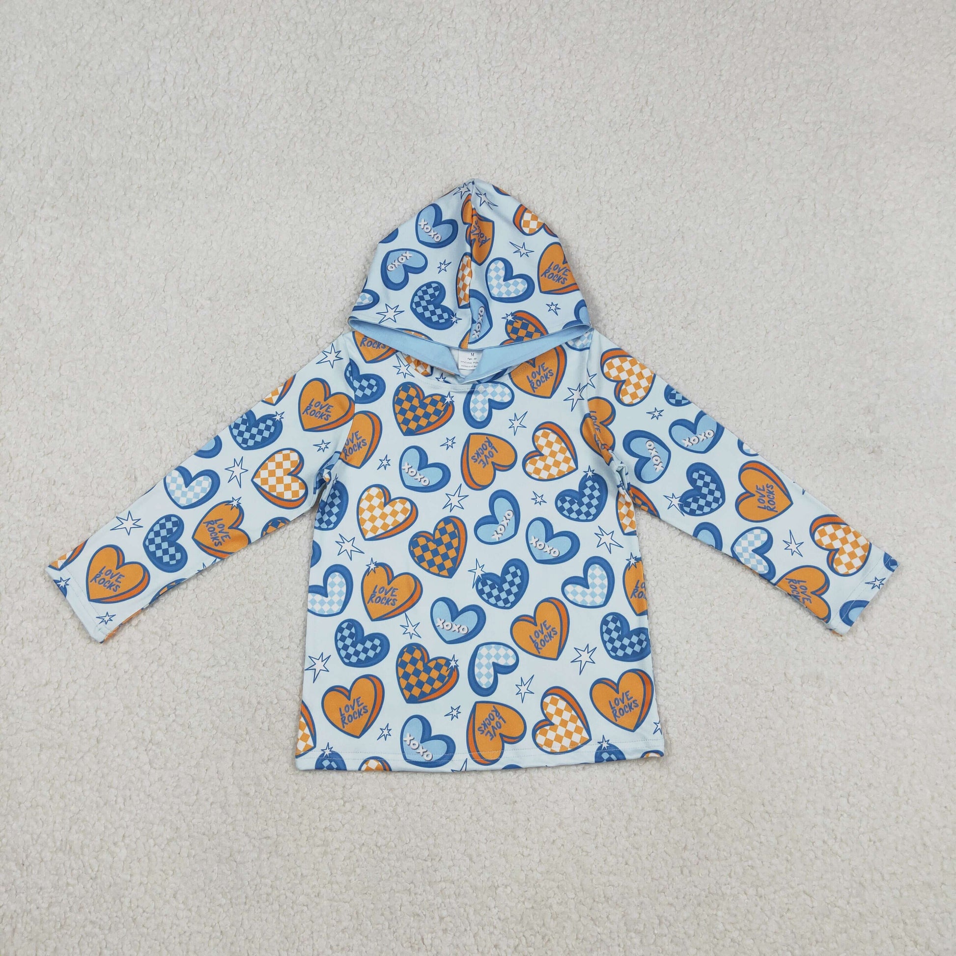 BT1509 Baby Boys Long Sleeve Blue Orange XOXO Hearts Valentines Hoodies Top
