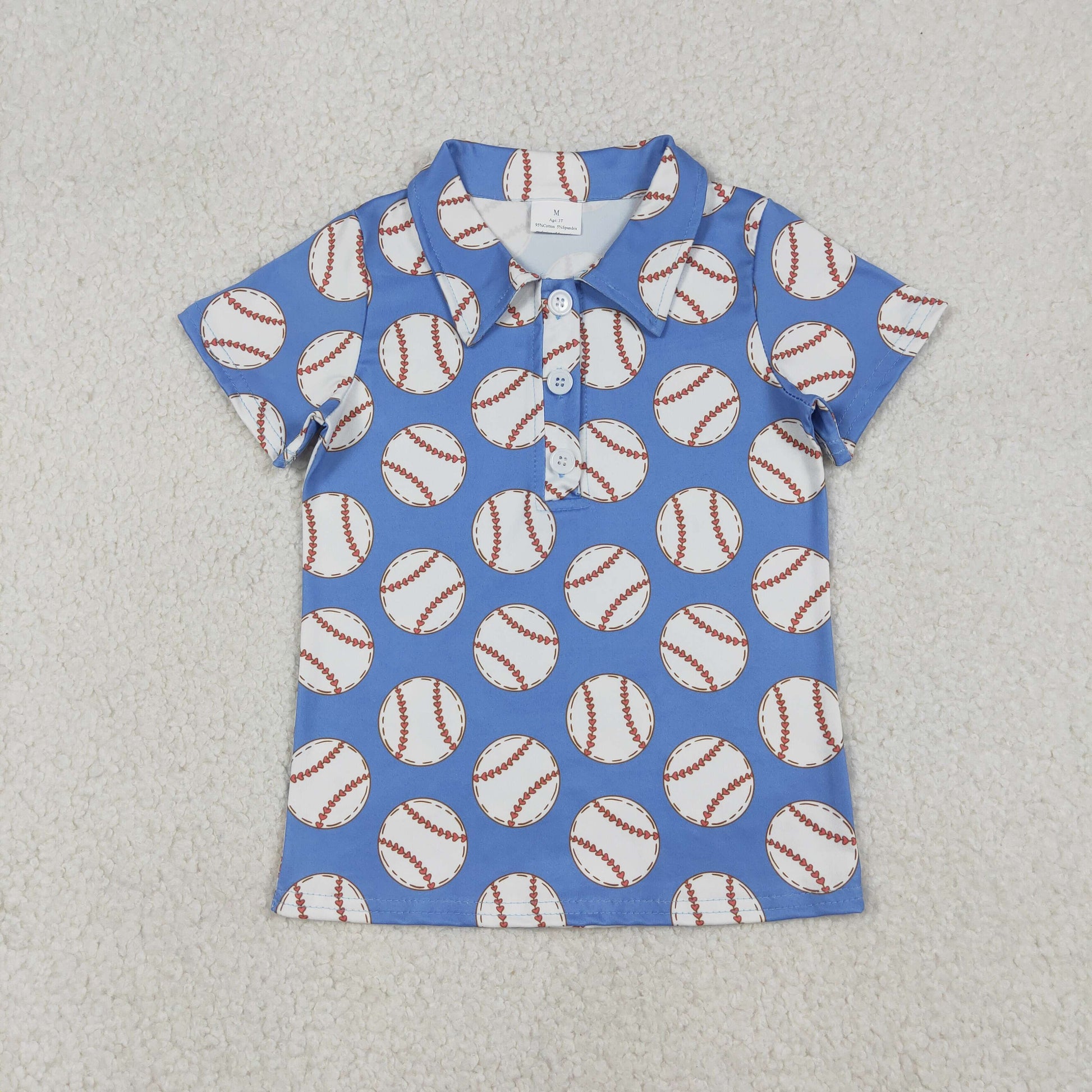 BT1578 Baby Boys Short Sleeve Blue Baseballs Team Button Polo Shirts Top