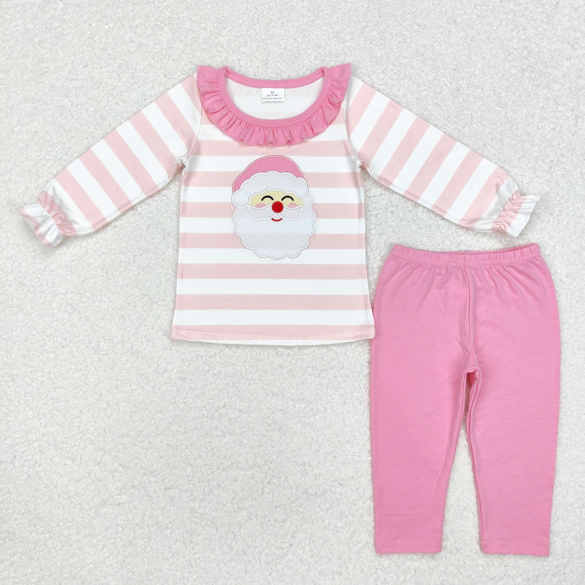 Embroidery Santa Sibling Baby Girls Tunic Top Pants Christmas Pajamas Clothes Sets