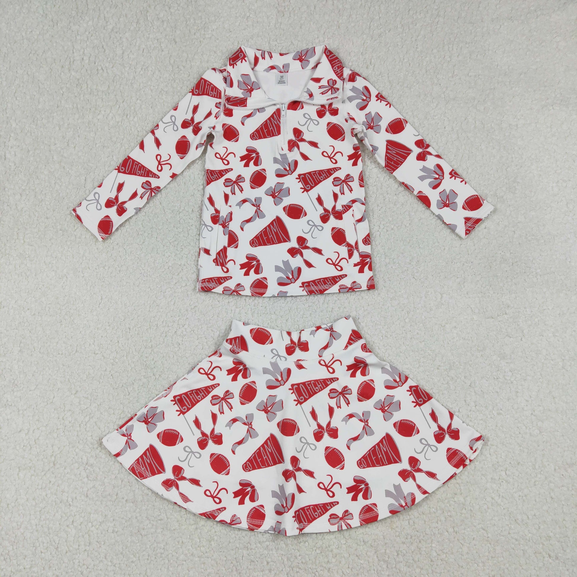 GLD1286 Baby Girls Red Footballs Zipper Pullovers Skirt Shorts Team Yoga Active Clothes Set