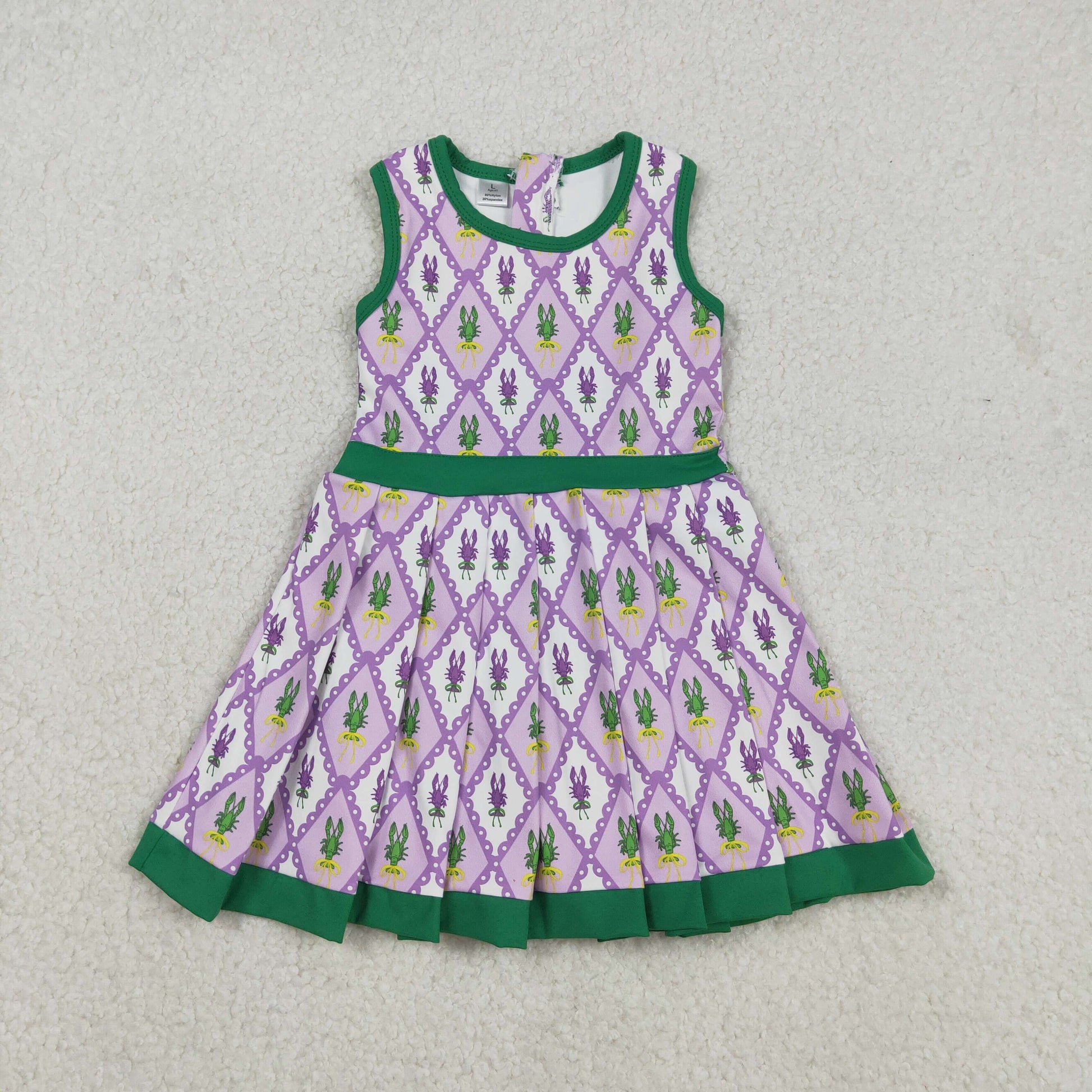GSD2868 Baby Girls Mardigras Crayfishes Checked Yoga Active Ruffle Skirt Shorts Knee Length Dress