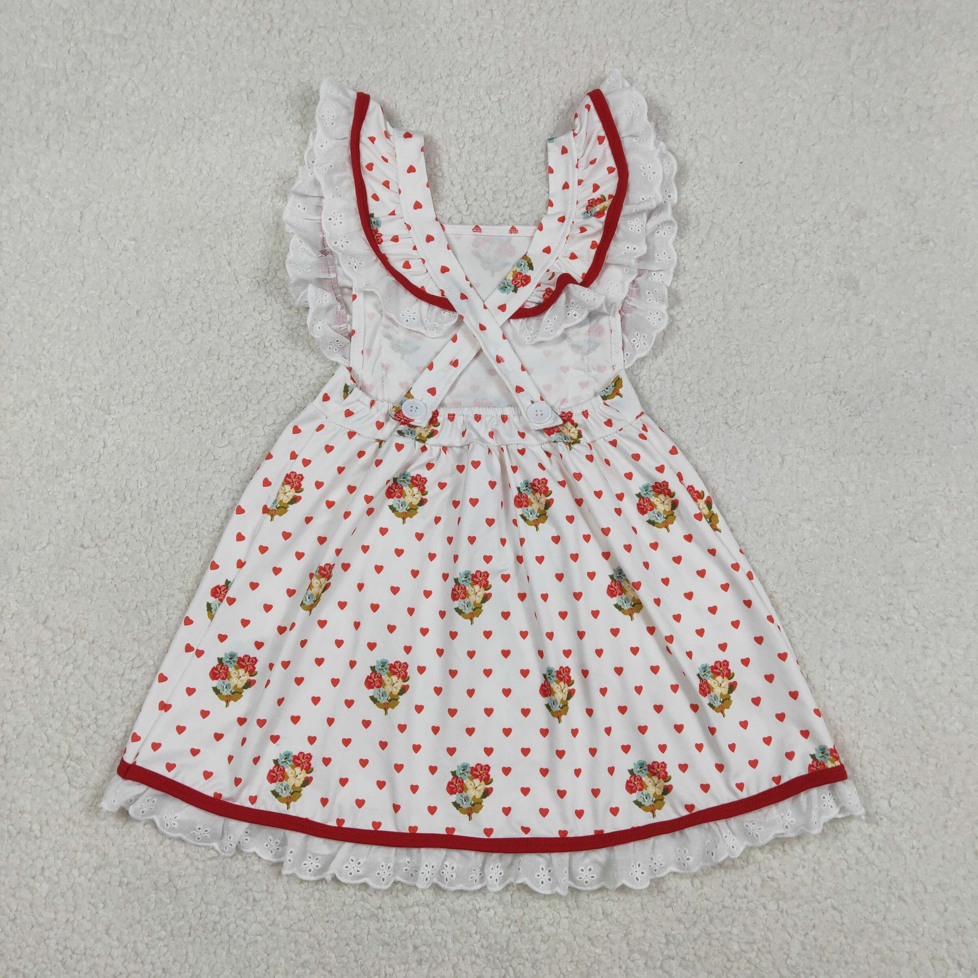 GSD2963 Baby Girls Flutter Sleeve Hearts Dogs Pockets Valentines Ruffle Knee Length Dress