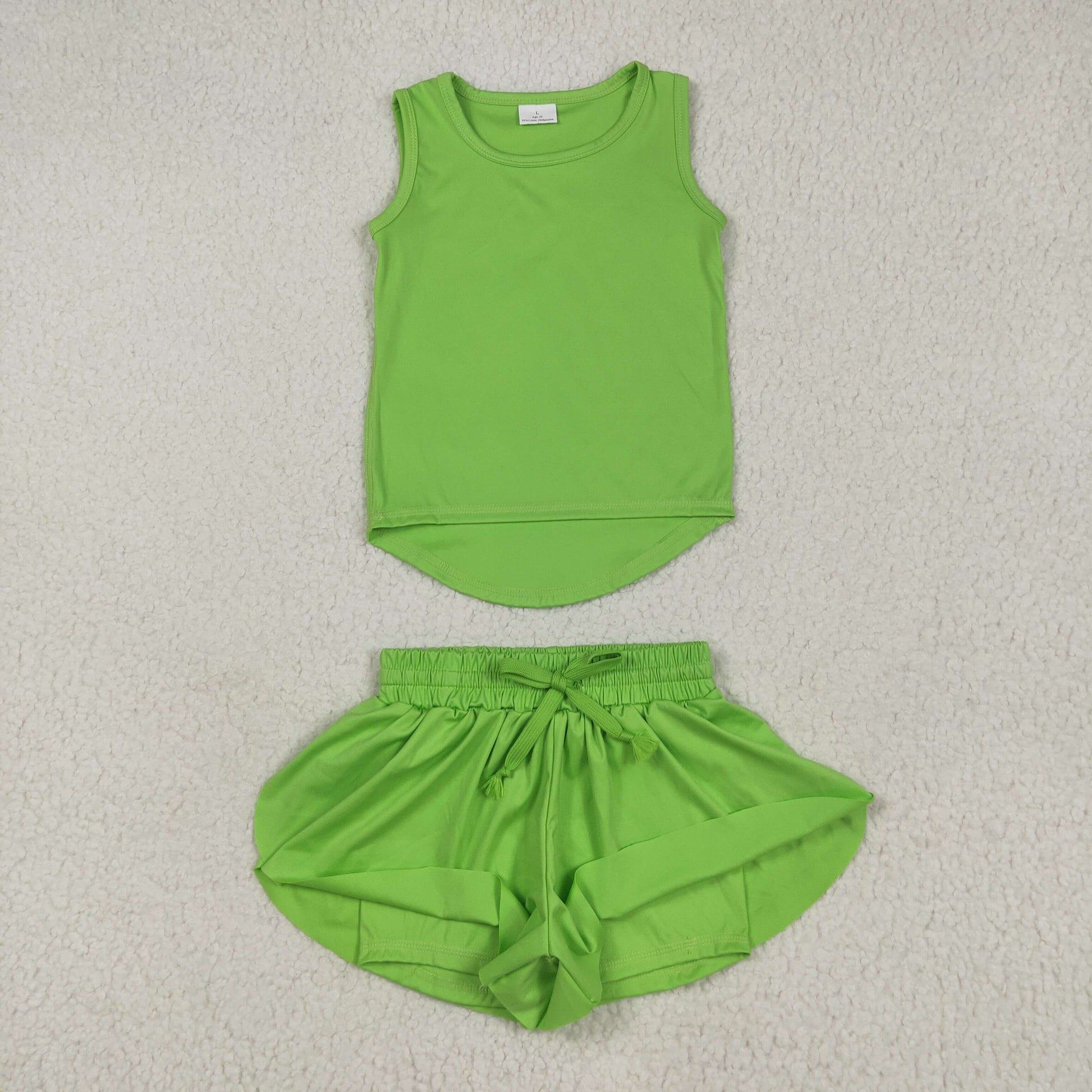 GSSO2503 Baby Girls Green Sleeveless Vests Top Ruffle Shorts Yoga Active Clothes Sets