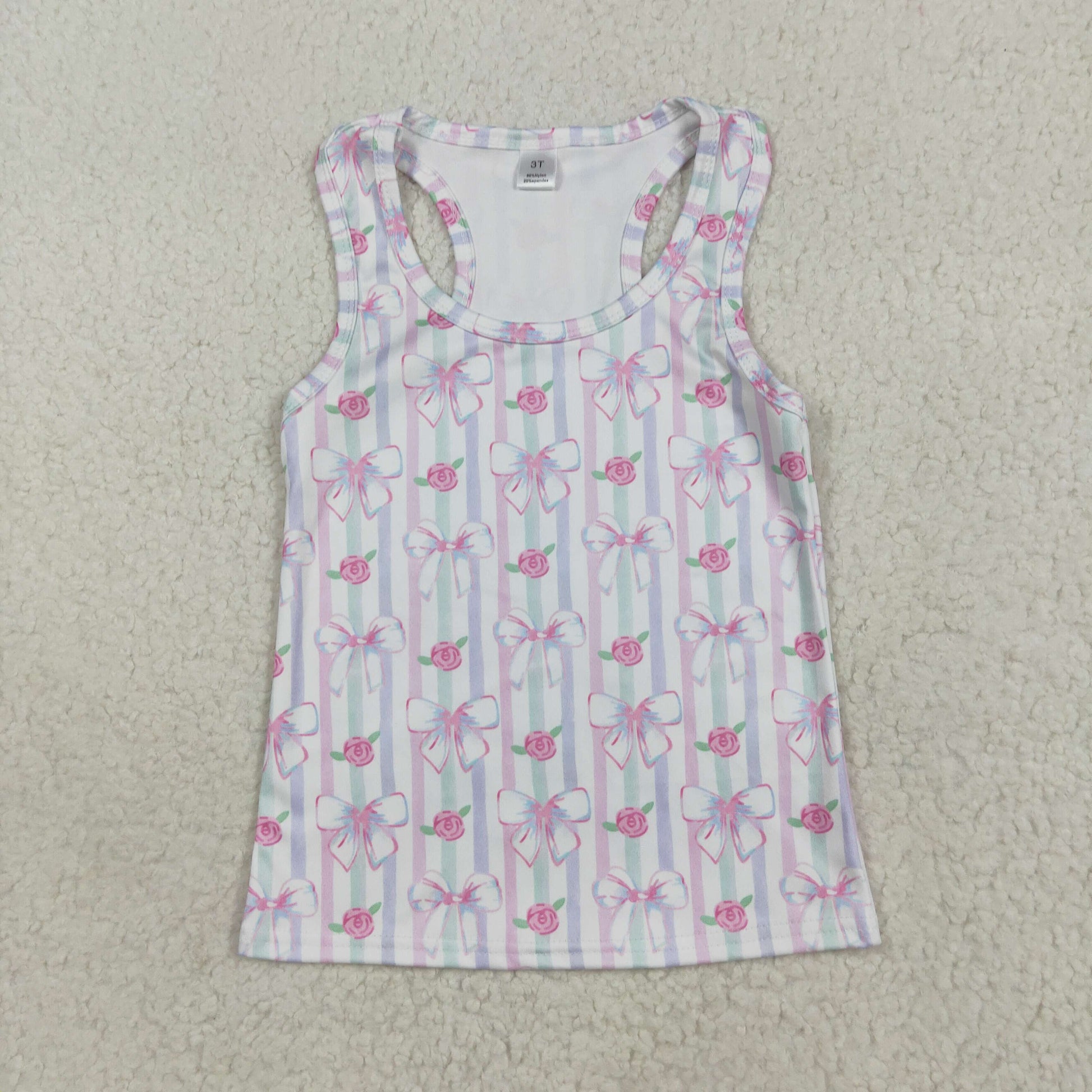 GT1014 Baby Girls Sleeveless Pink Bows Flowers Stripe Vests Shirts Top