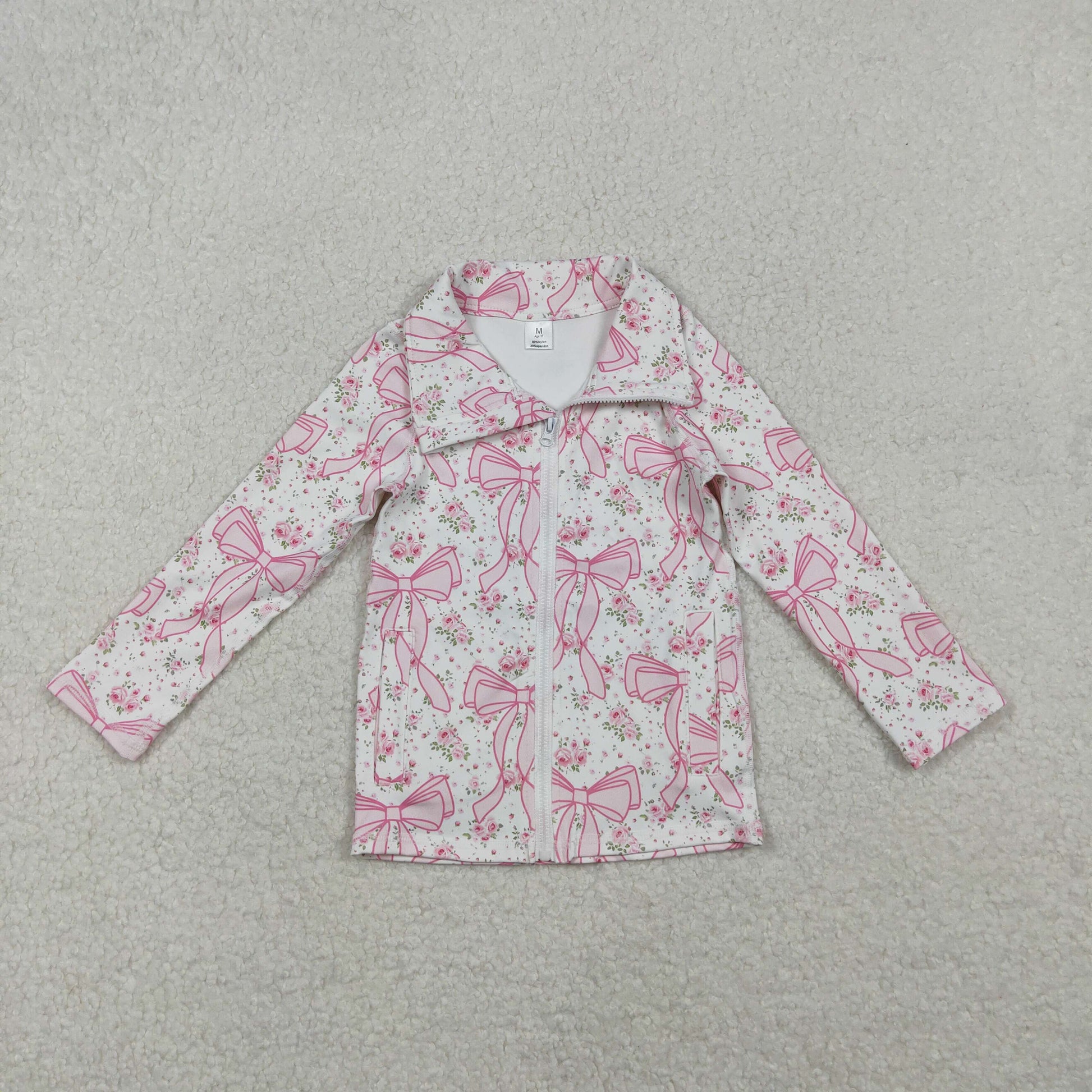 GT1082 Baby Girls Pink Bows Flowers Yoga Active Zipper Pockets Jackets Top