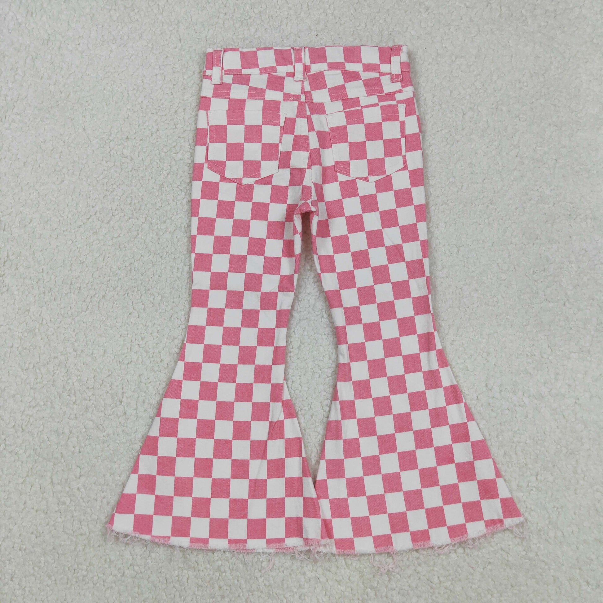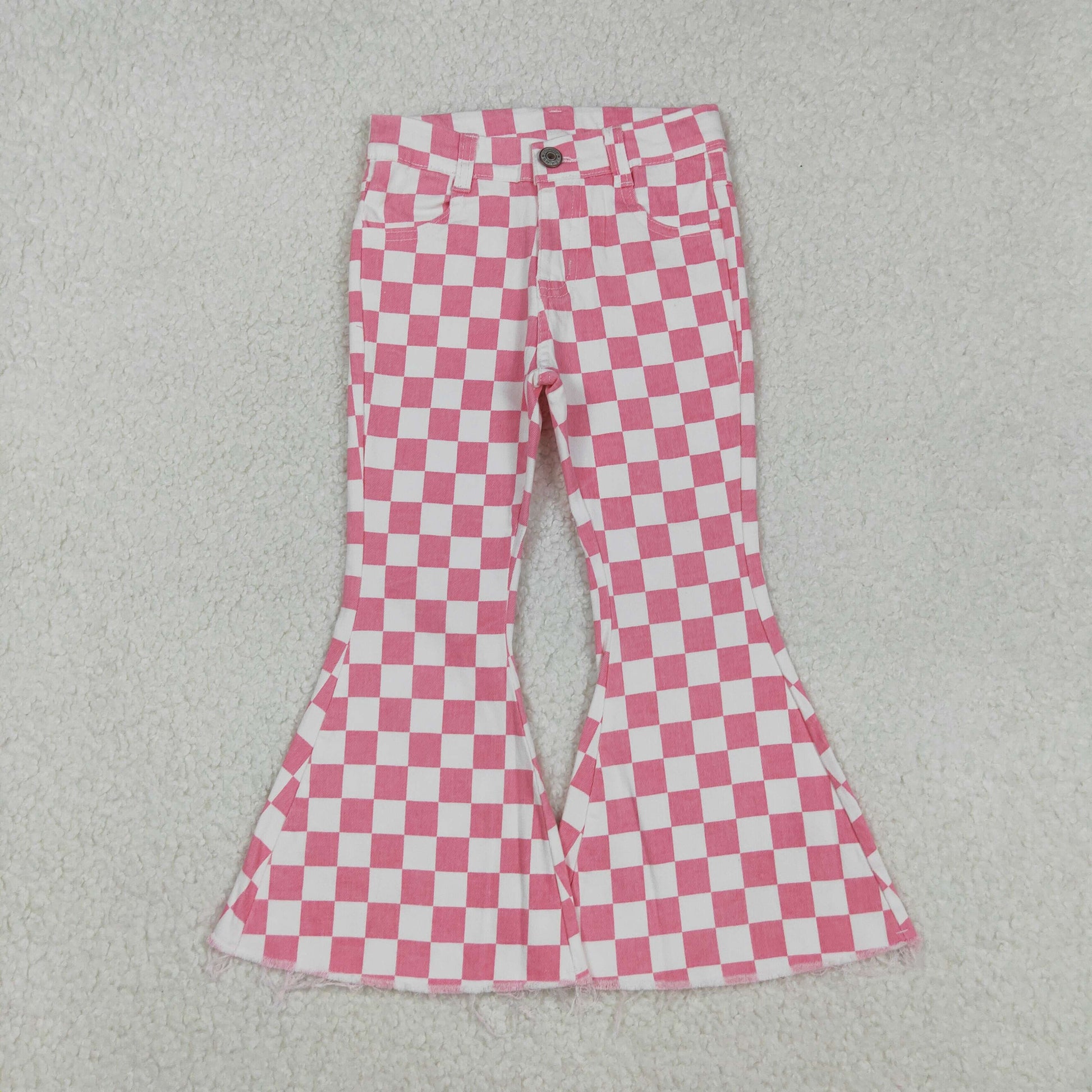 P0348 Baby Girl Clothes Pink Plaid Bell Bottom Jeans