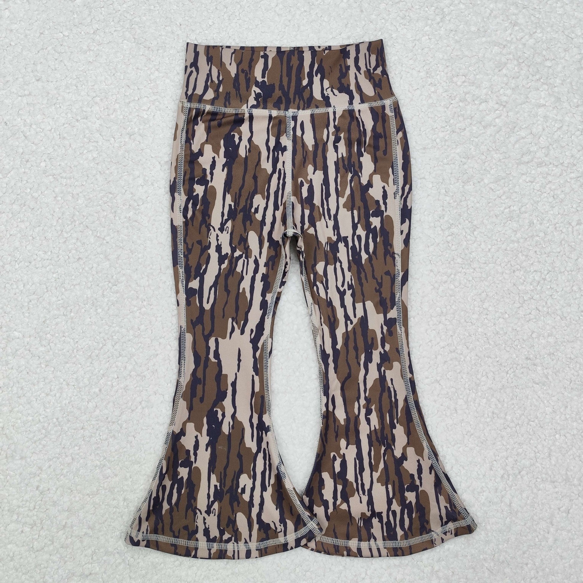 P0691 Baby Girls Olive Camo Yoga Active Bell Bottom Pants