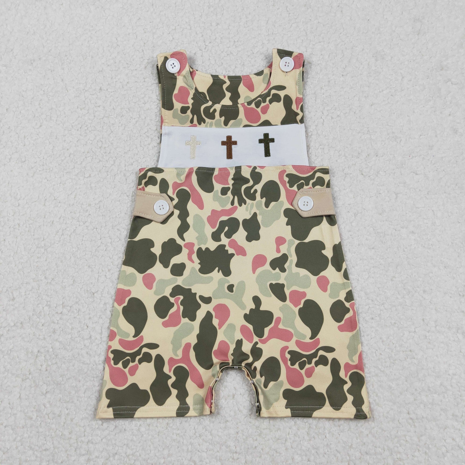 Sibling Baby Boys Embroidery Crosses Camo Easter T-shirts Shorts Rompers
