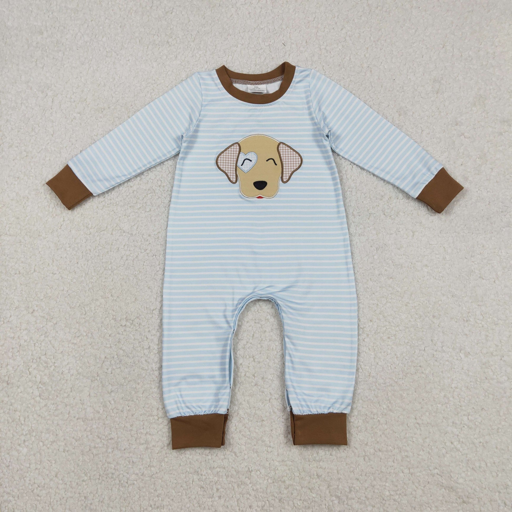 Sibling Baby Boys Embroidery Dogs Stripe Pants Clothes Set Rompers