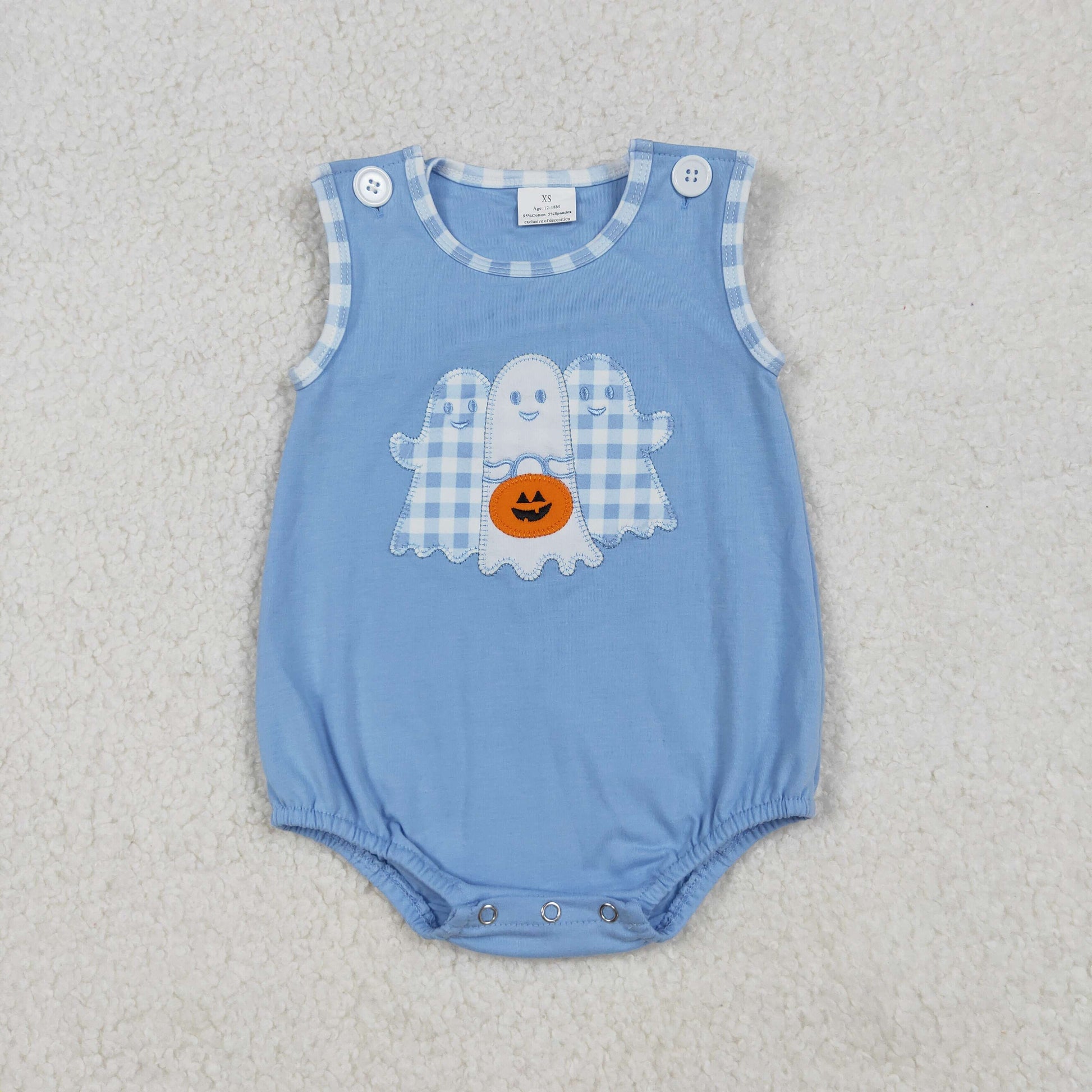 Sibling Baby Boys Girls Embroidery Ghosts Pumpkins Halloween Rompers