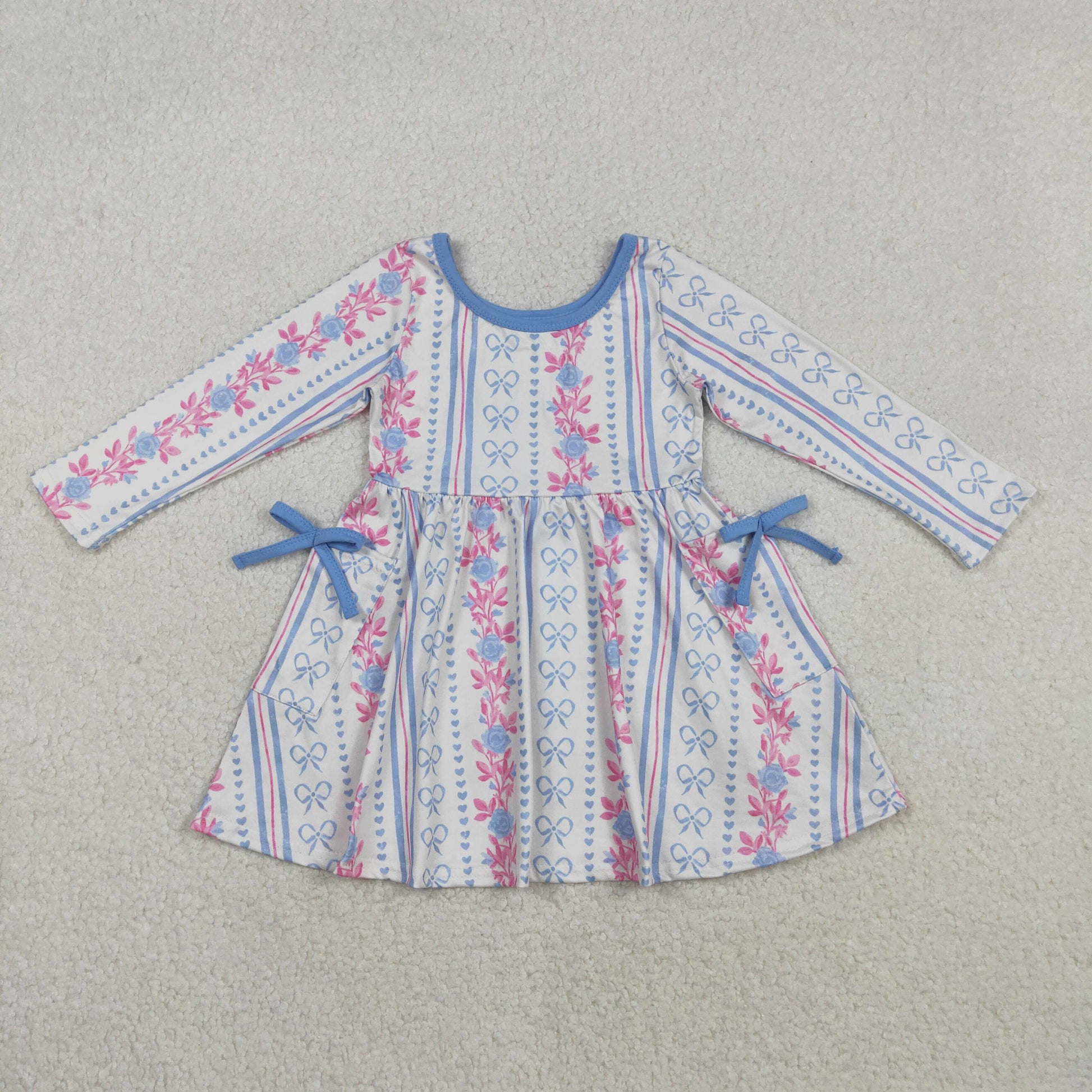 Sibling Baby Girls Colorful Hearts Bows Flowers Pockets Knee Length Dresses