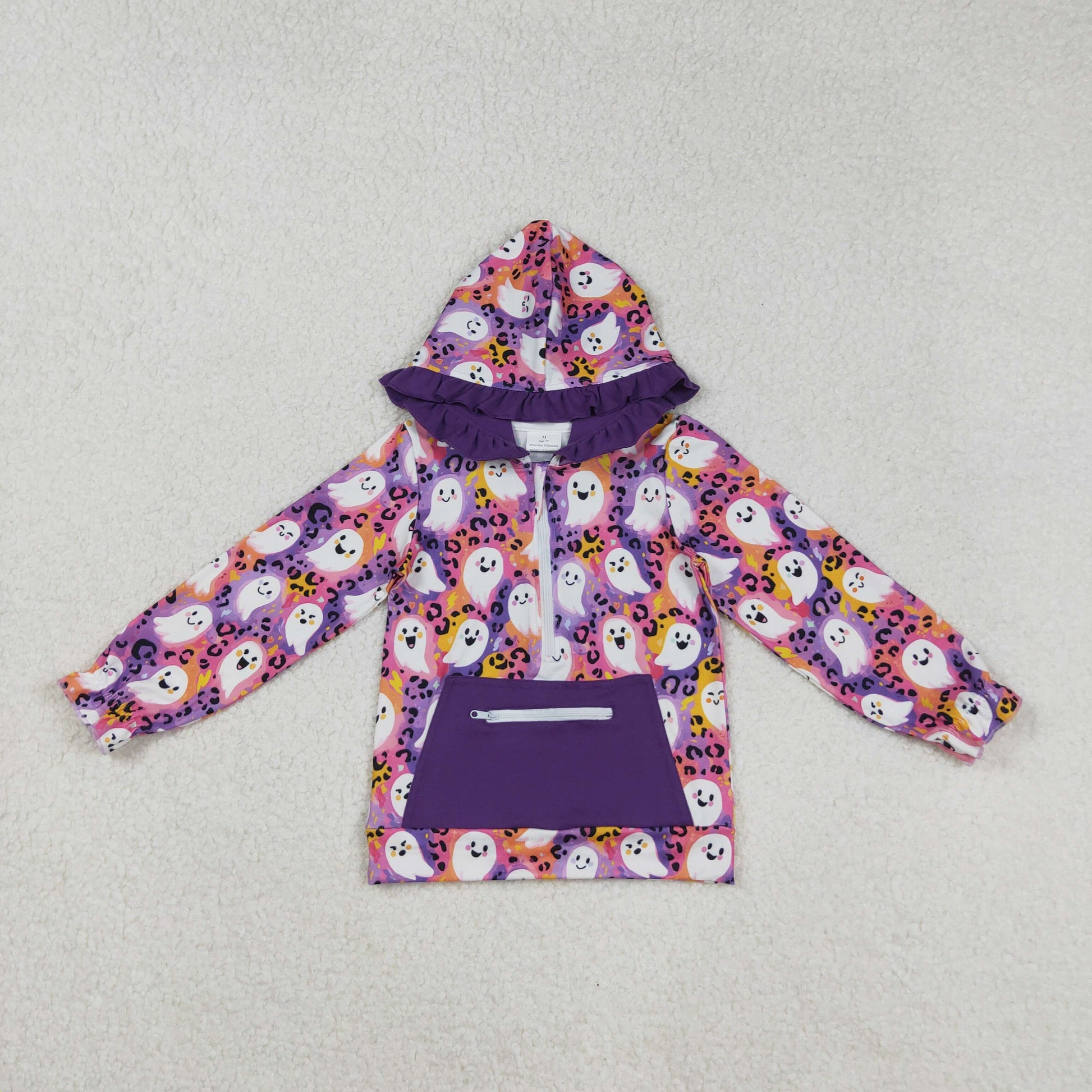 Sibling Baby Girls Colorful Patchwork Ghosts Pocket Zipper Halloween Hoodies Top