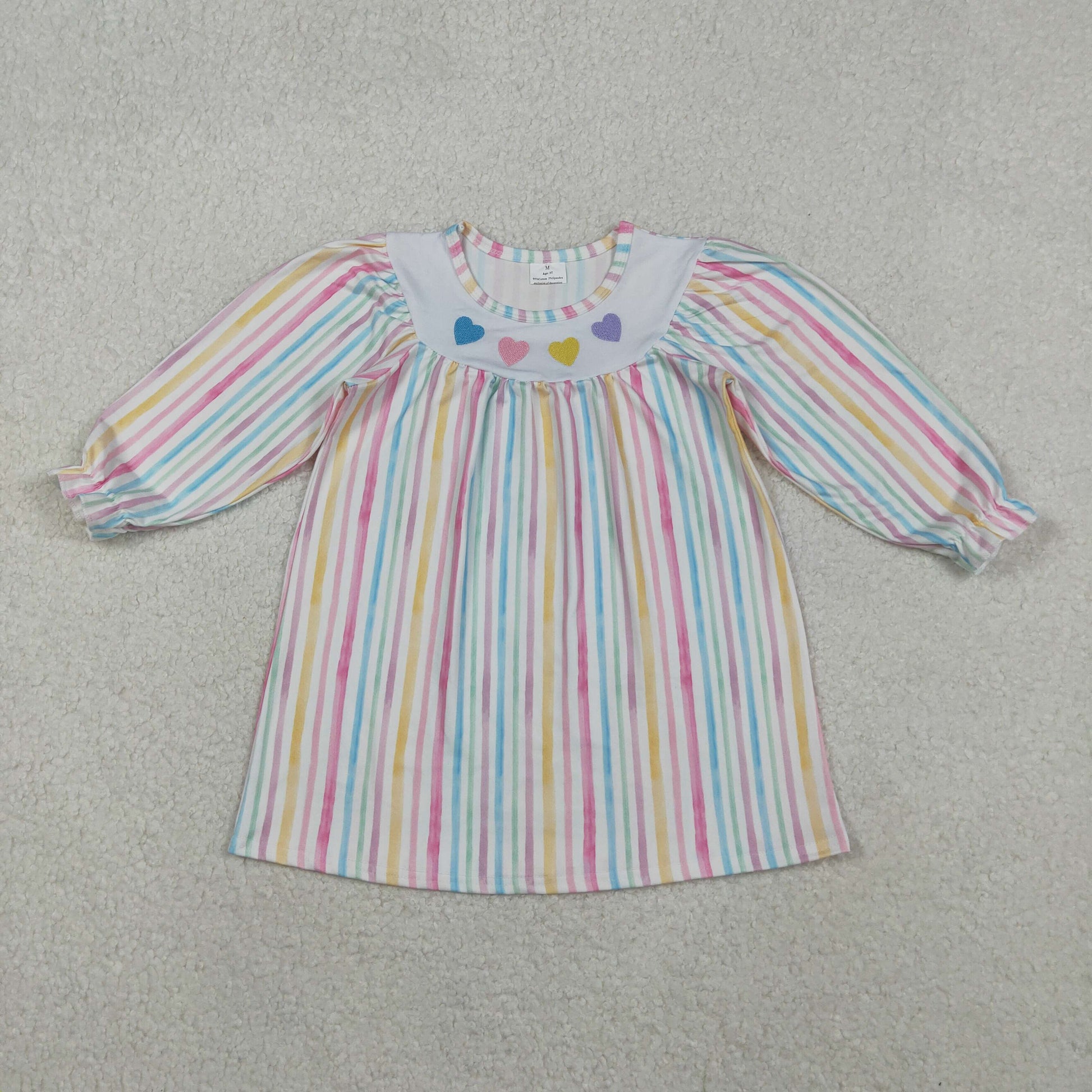 Sibling Baby Girls Colorful Stripe Embroidery Hearts Ruffle Sleeve Knee Length Dress Rompers