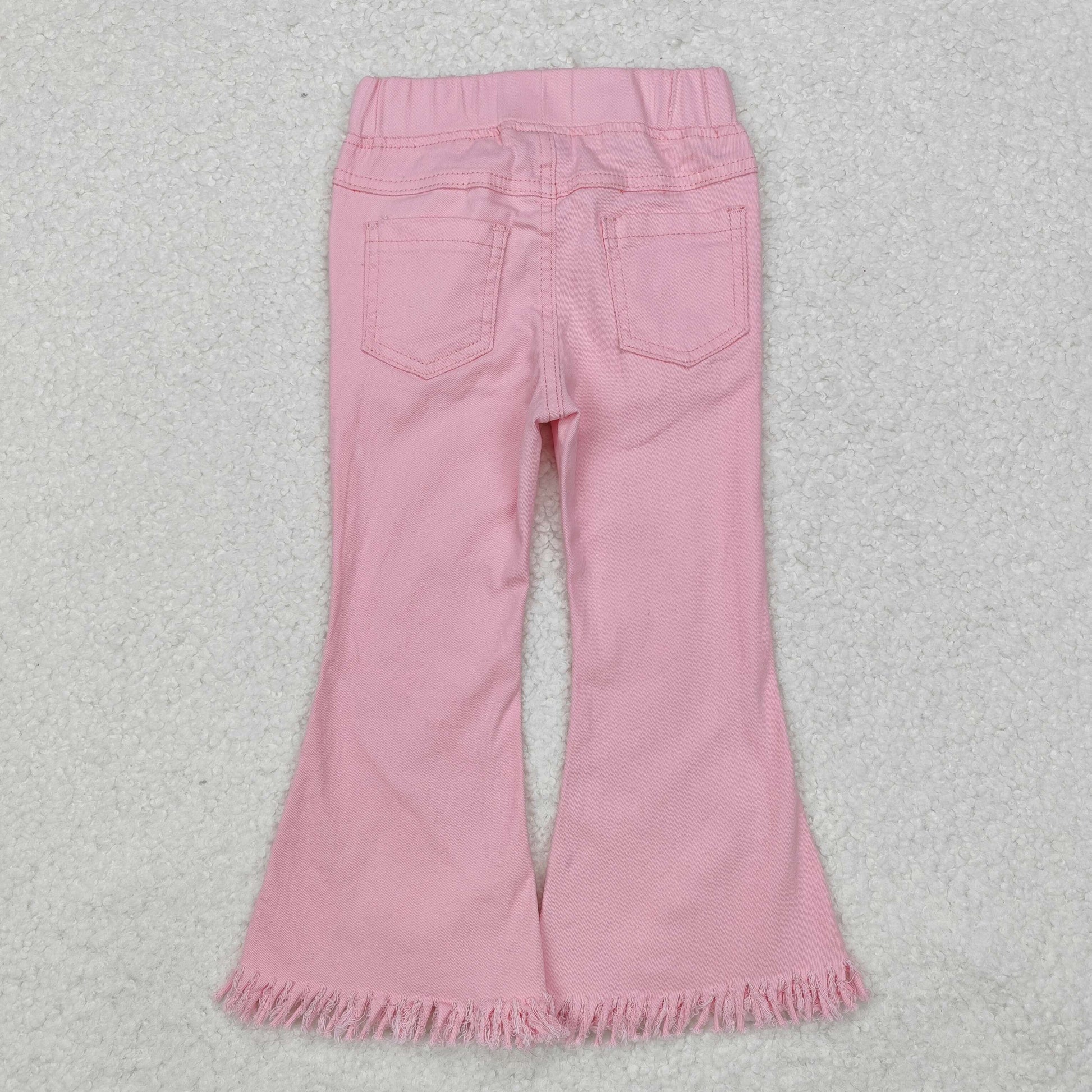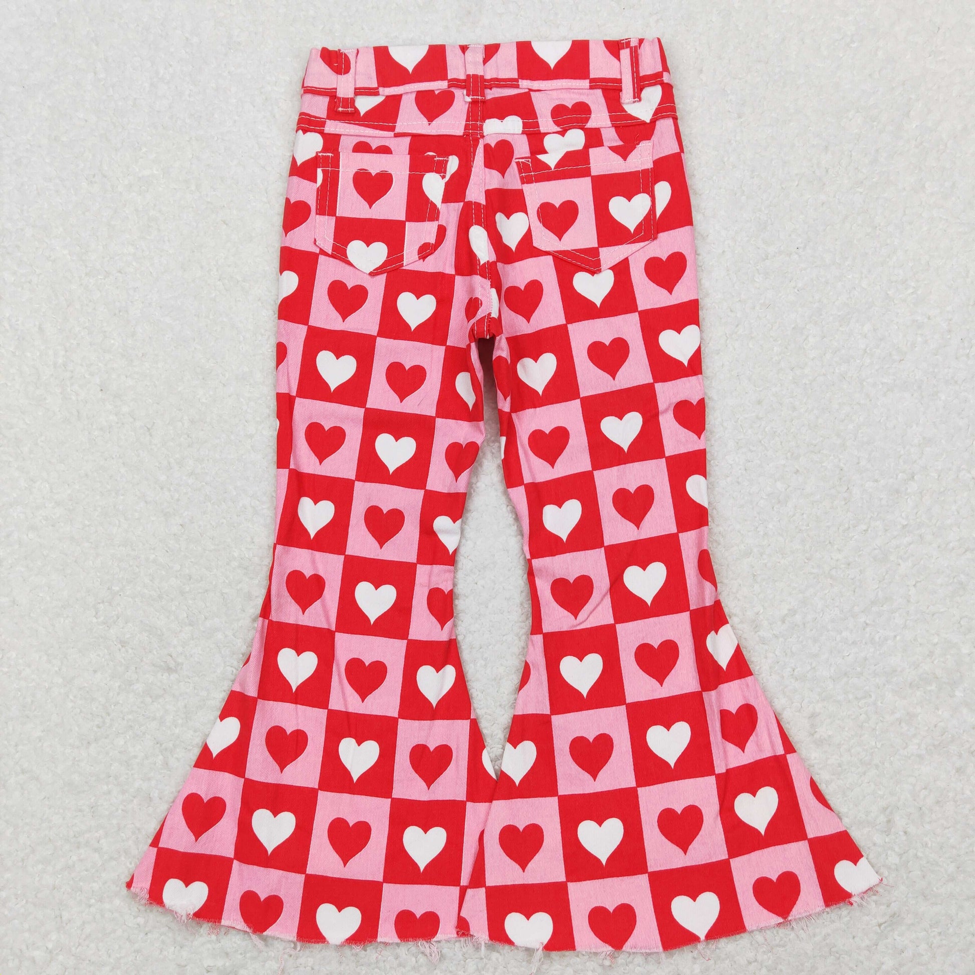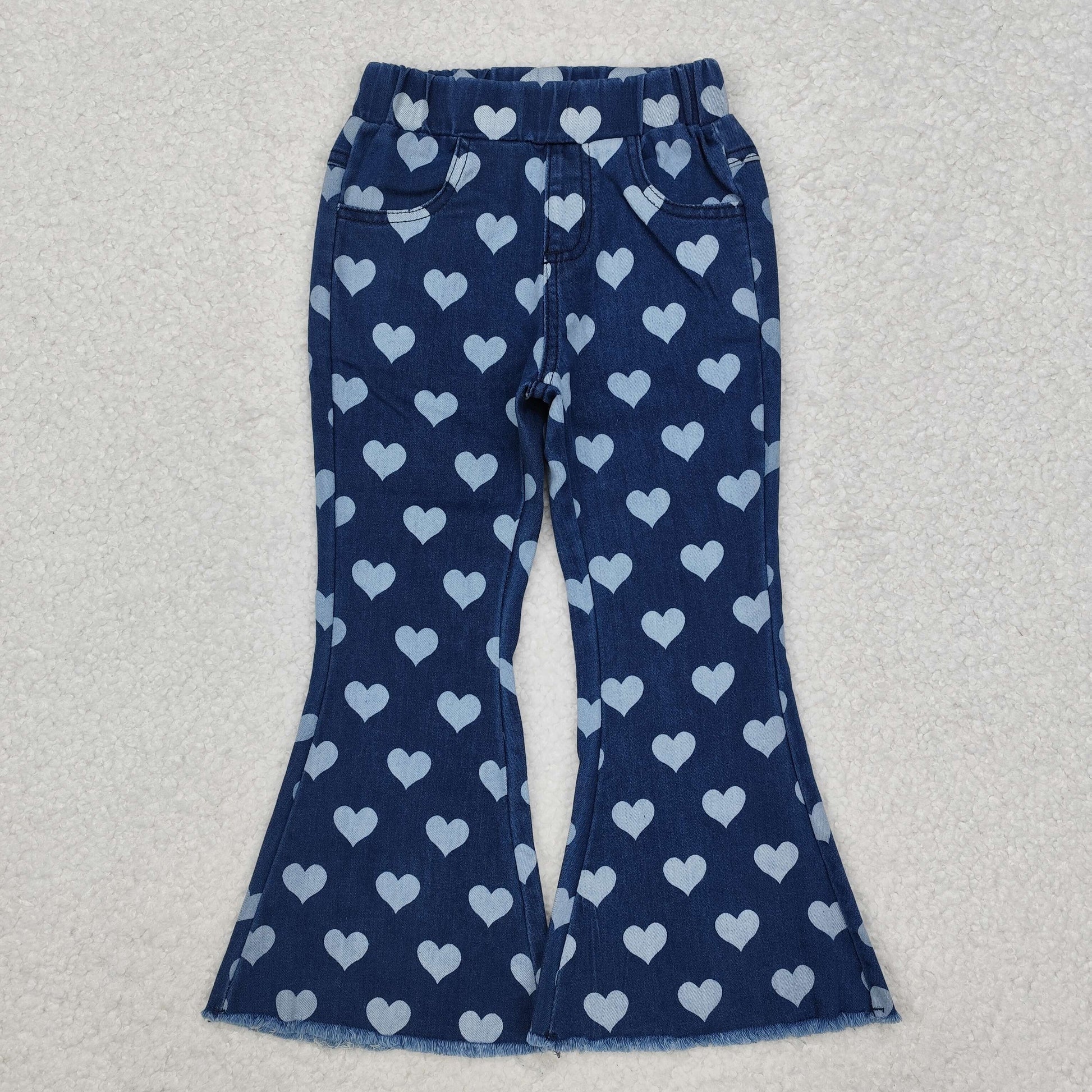 Sibling Baby Girls Hearts Flowers Bell Bottom Denim Pants Jeans