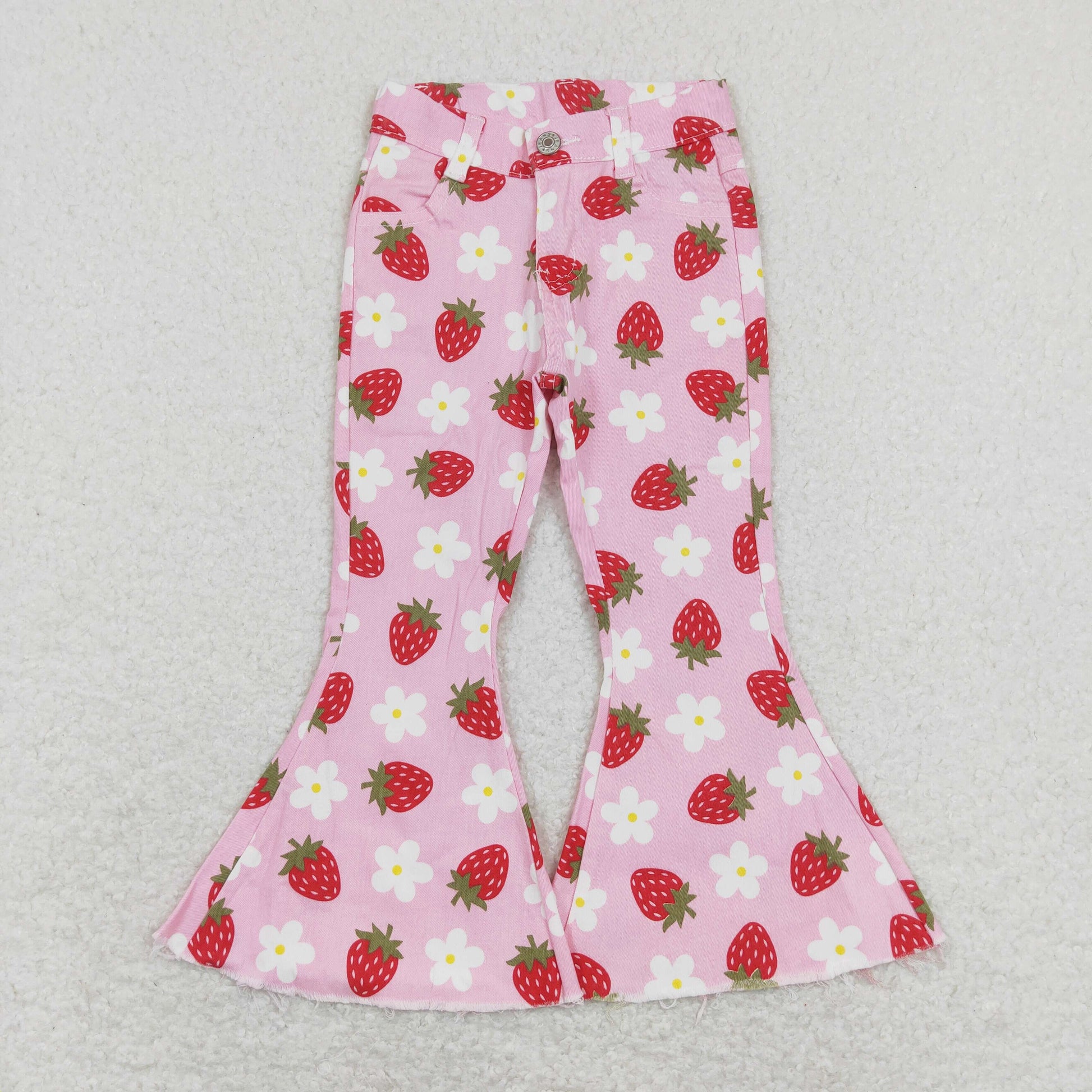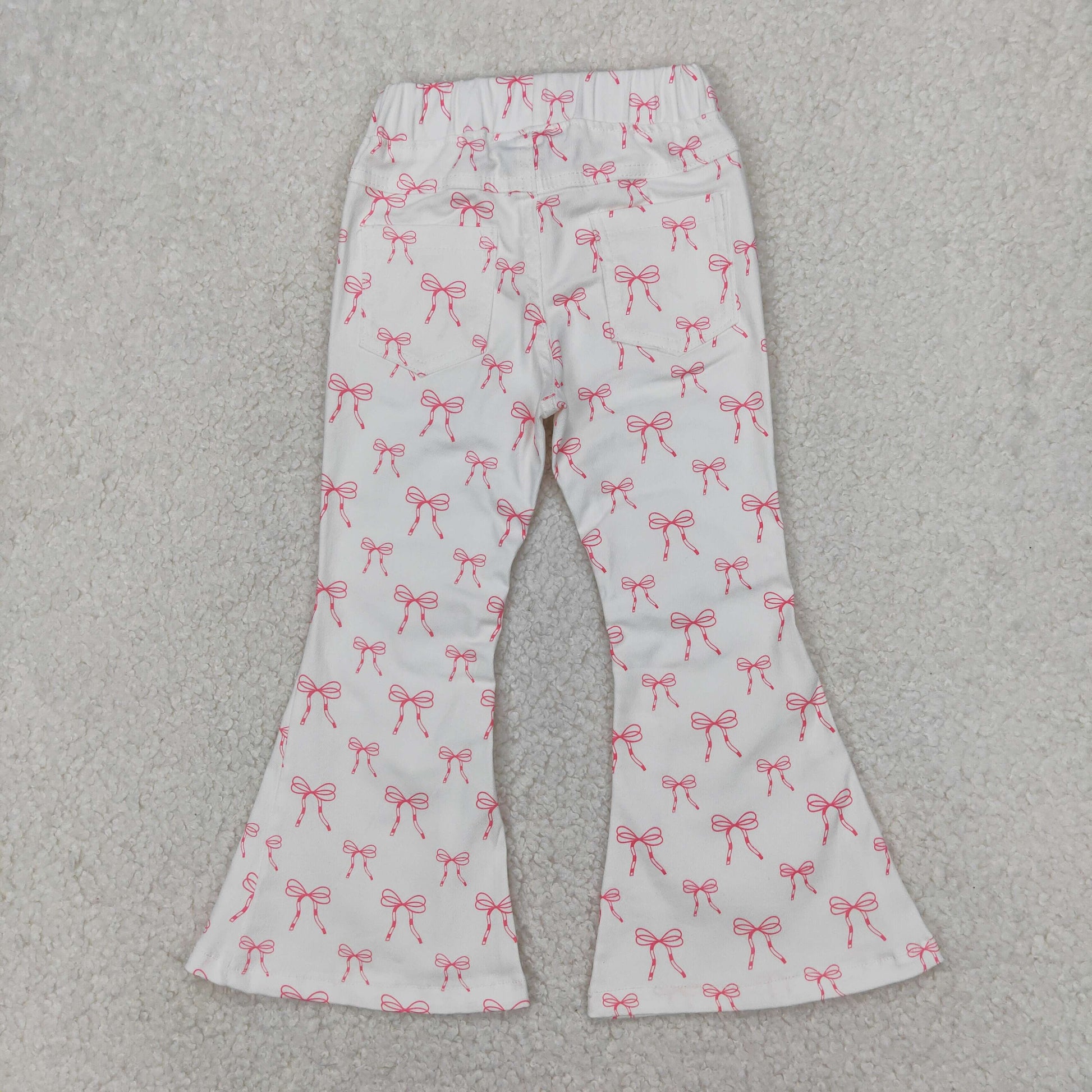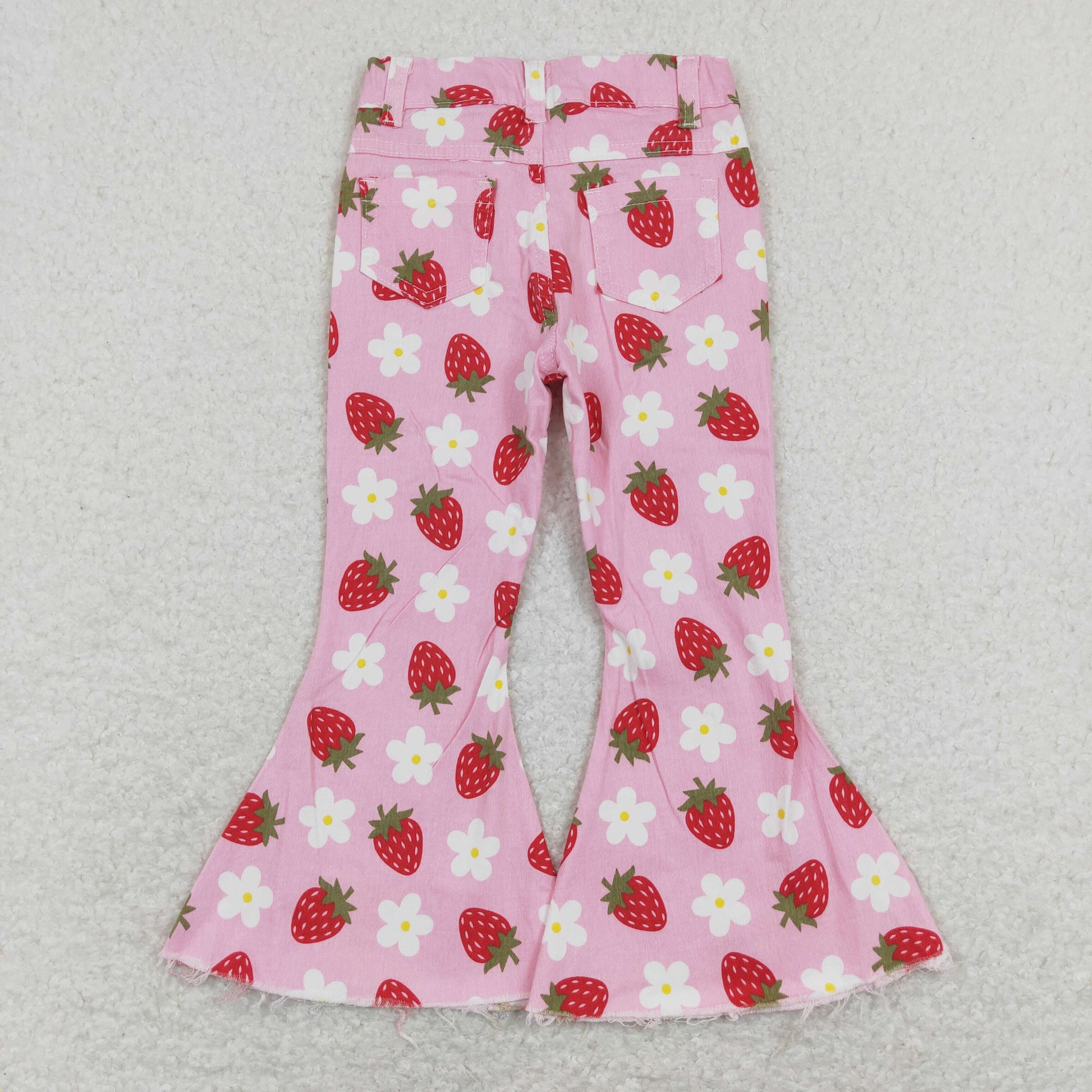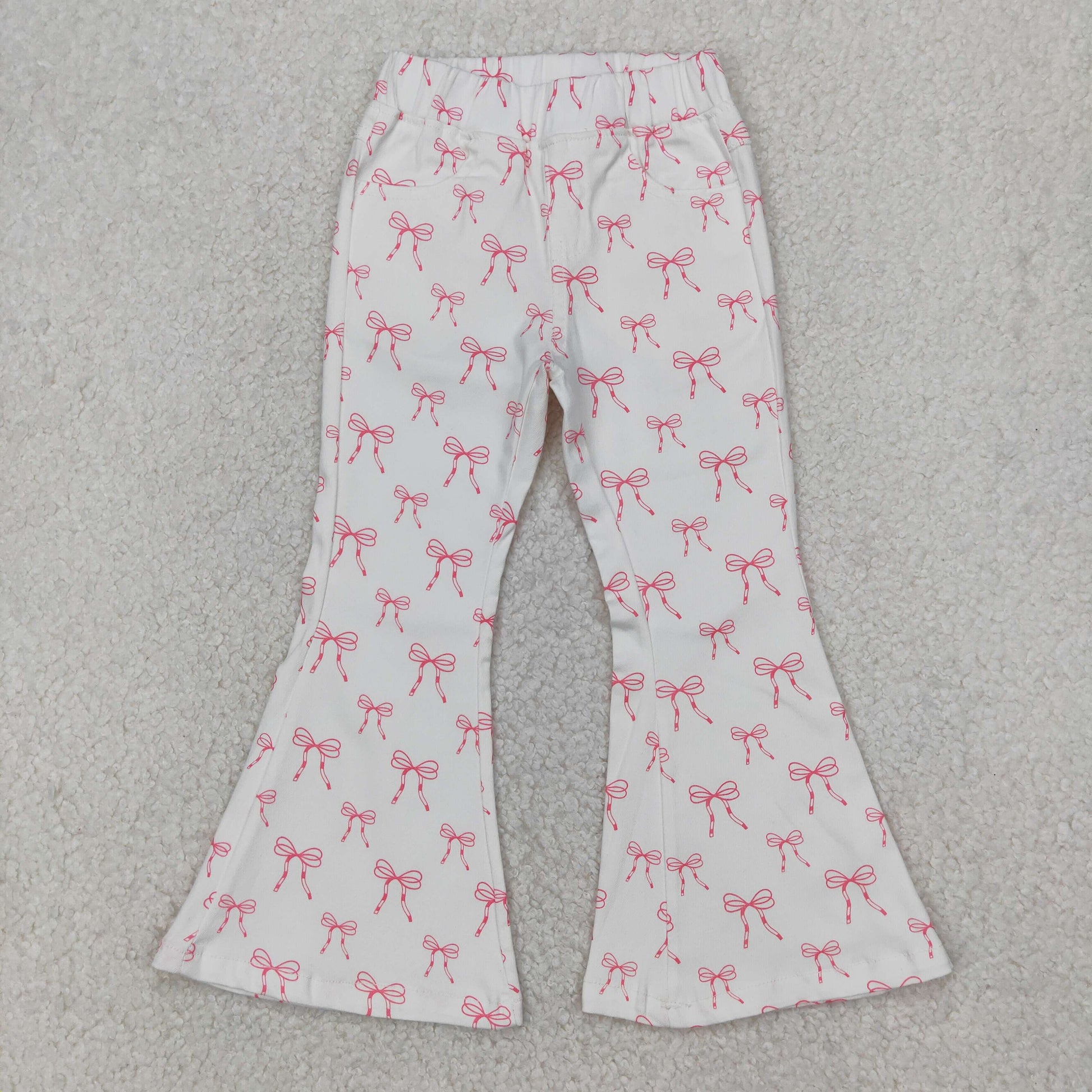 Sibling Baby Girls Hearts Flowers Bell Bottom Denim Pants Jeans