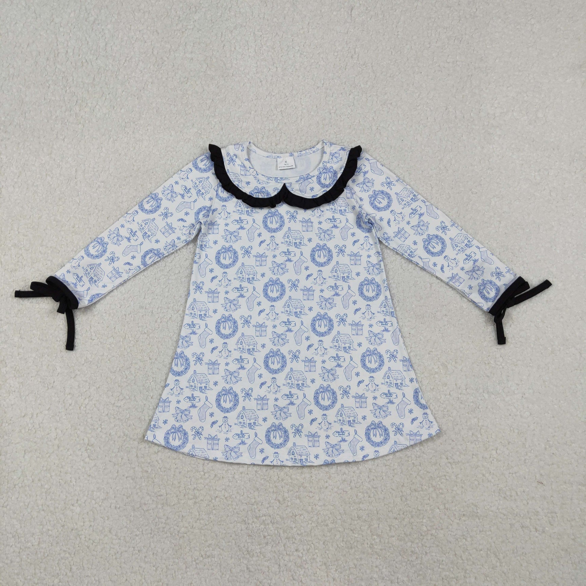 Sibling Baby Girls Long Ruffle Sleeve Snowmen Deer Christmas Knee Length Dresses