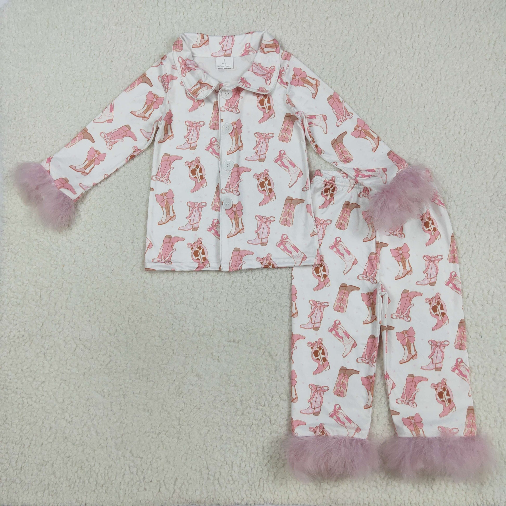 Sibling Baby Girls Sister Bows Boots Hearts Buttons Top Pants Fur Pajamas Clothes Sets
