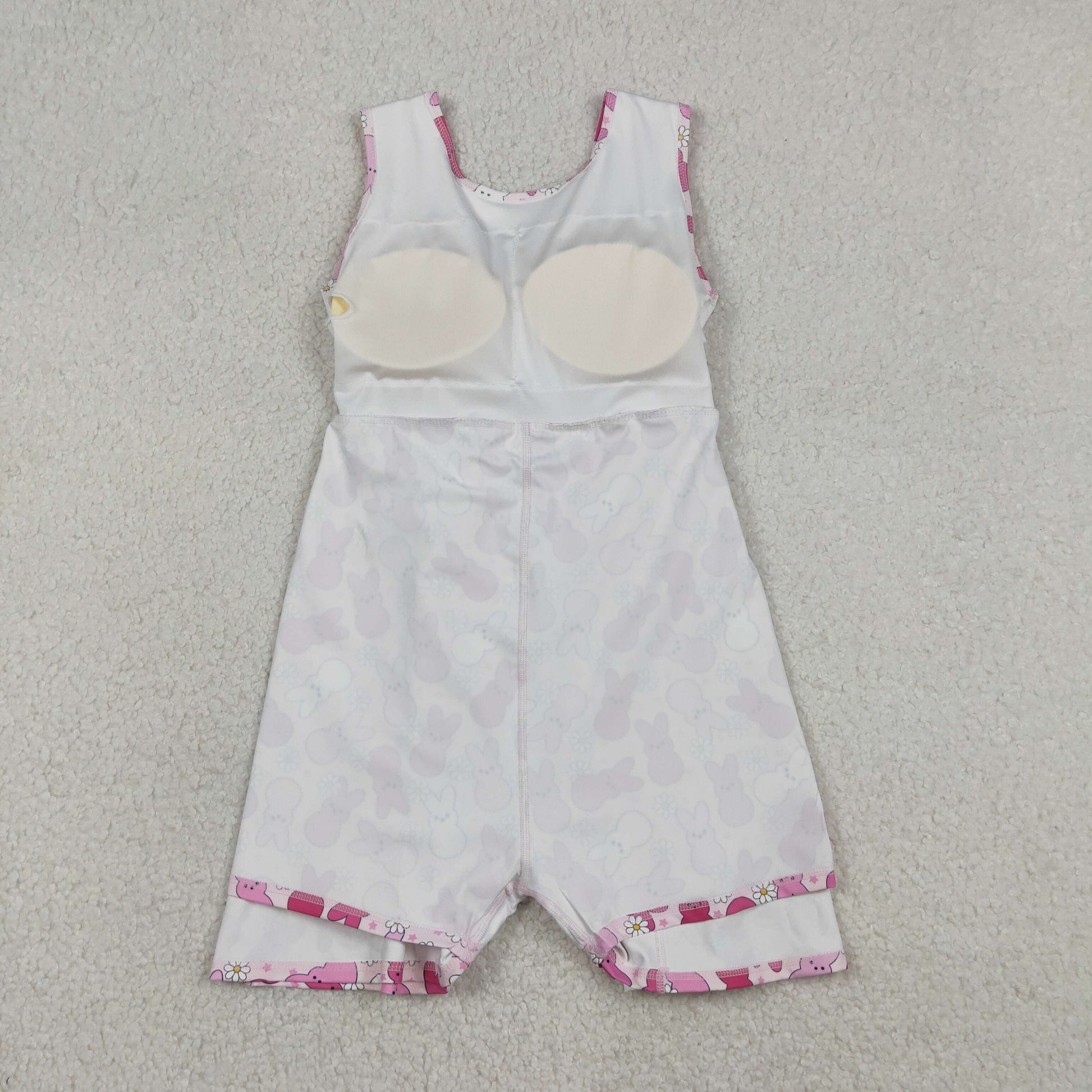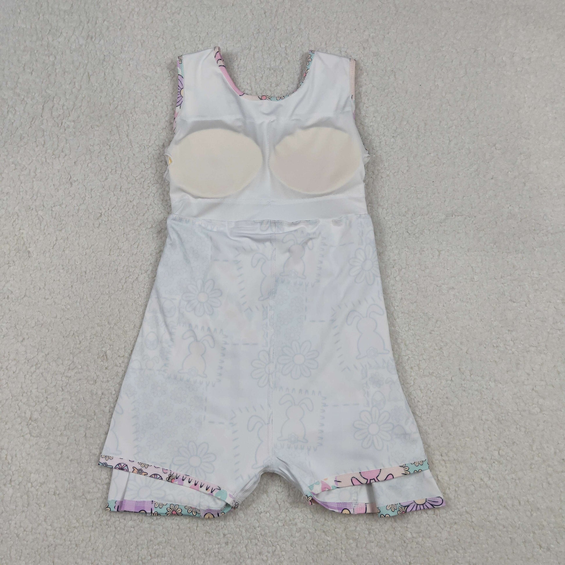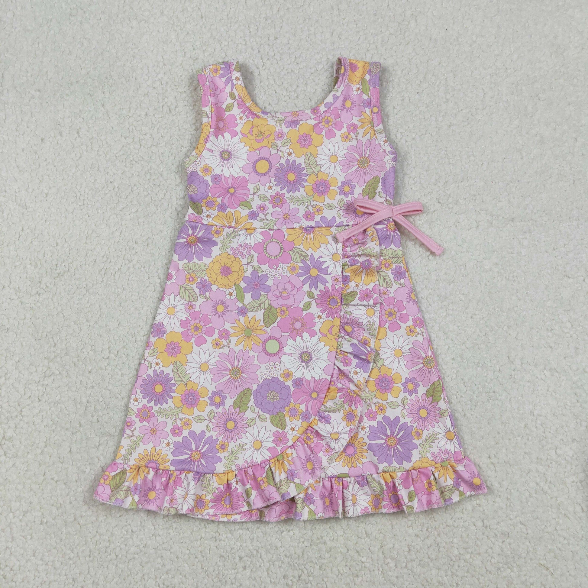 Sibling Baby Girls Sleeveless Rabbits Flowers Yoga Active Shorts Ruffle Knee Length Dresses