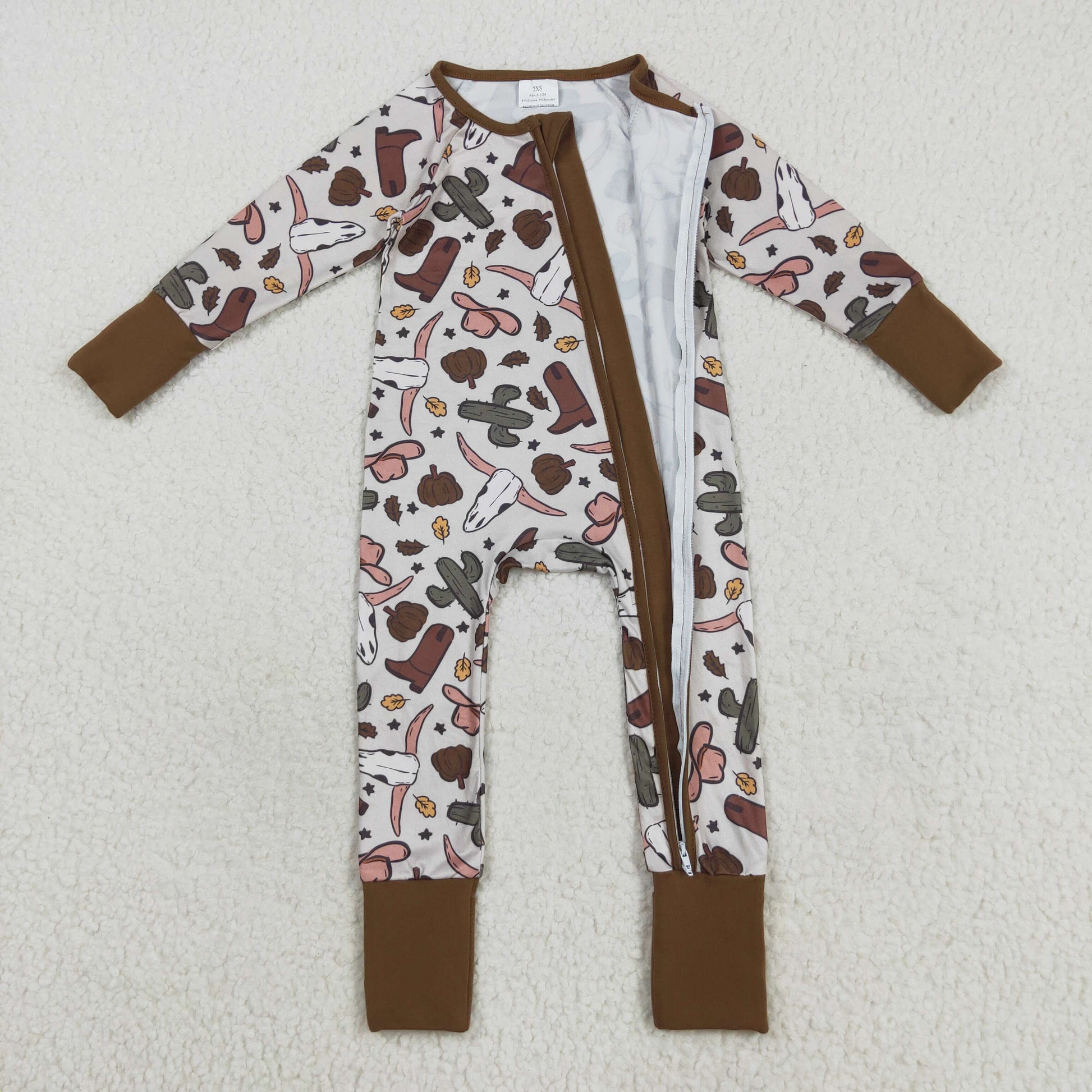Sibling Baby Kids Hats Boots Horses Cows Western Two Way Zip Convertible Rompers