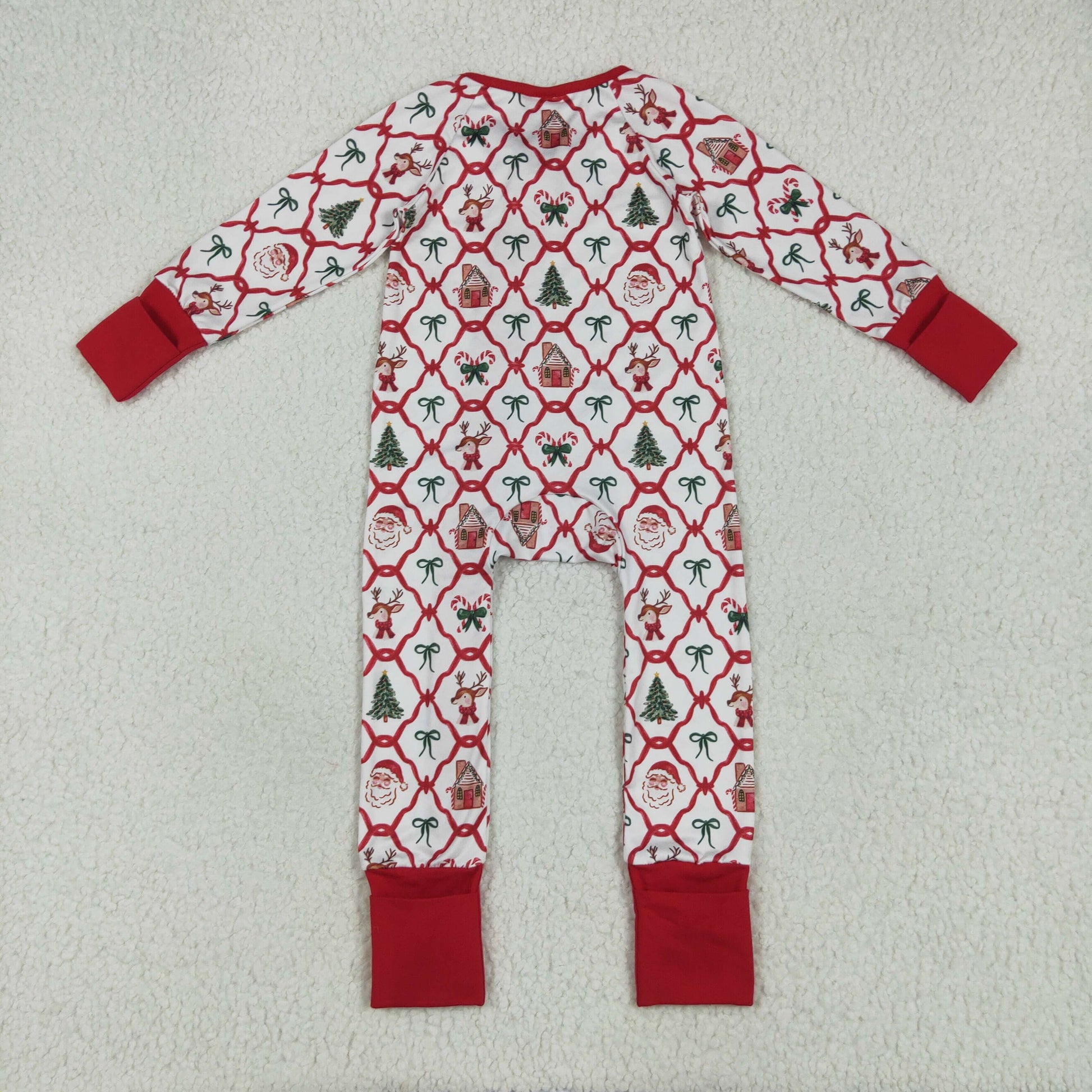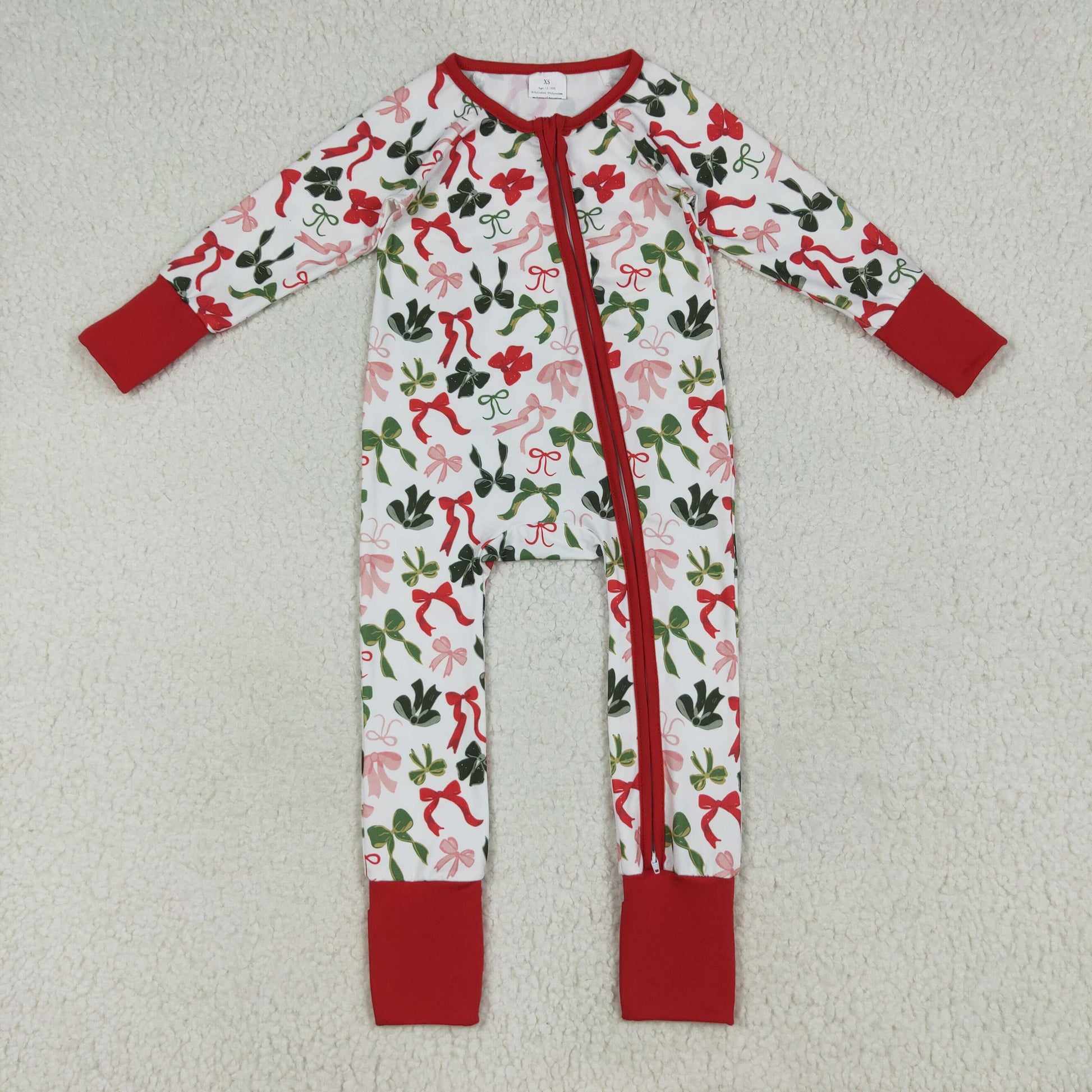 Sibling Baby Kids Holly Bows Santa Christmas Two Way Zip Convertible Rompers