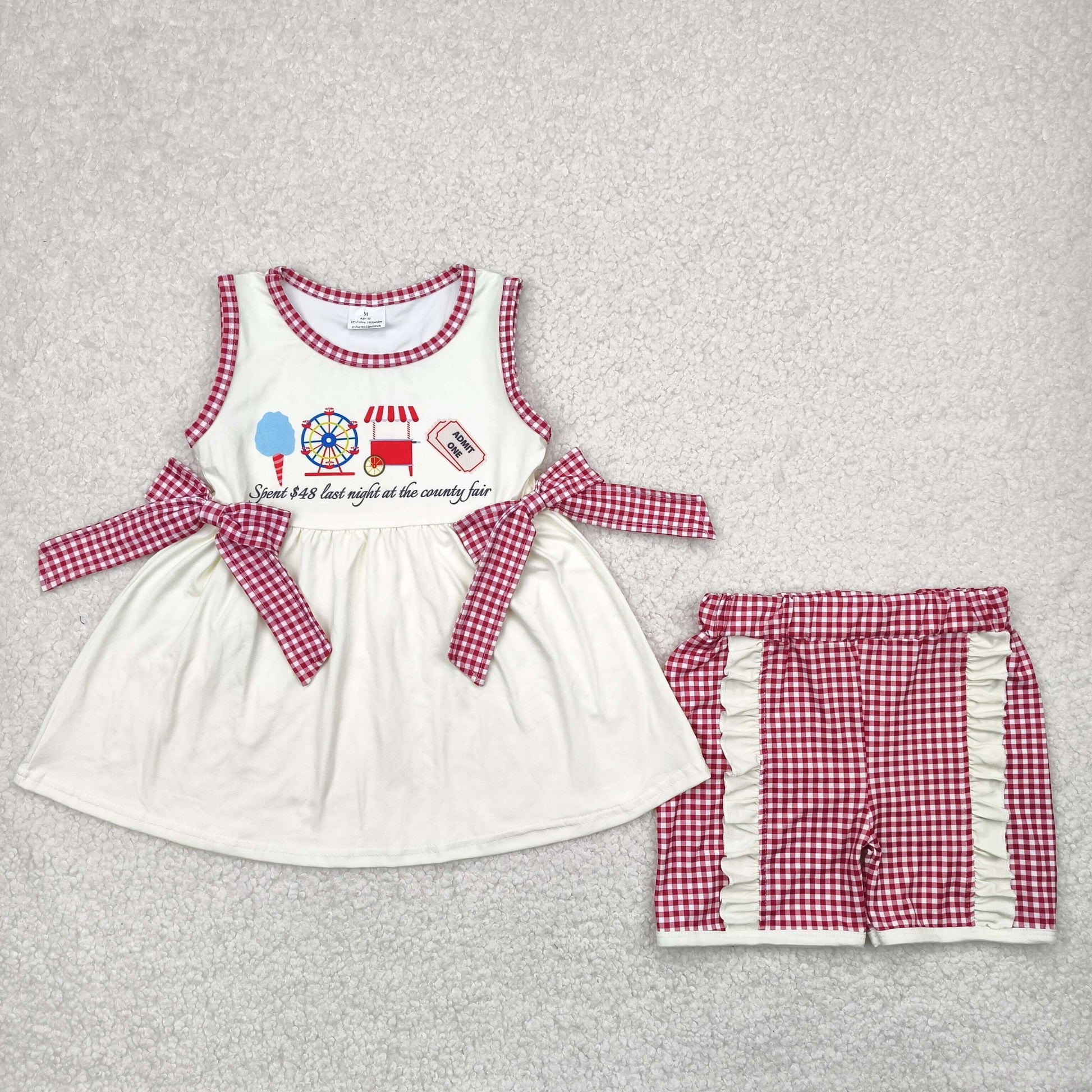 Sibling Baby Kids Ice Cream Store Top Red Plaid Pockets Shorts Sets Rompers