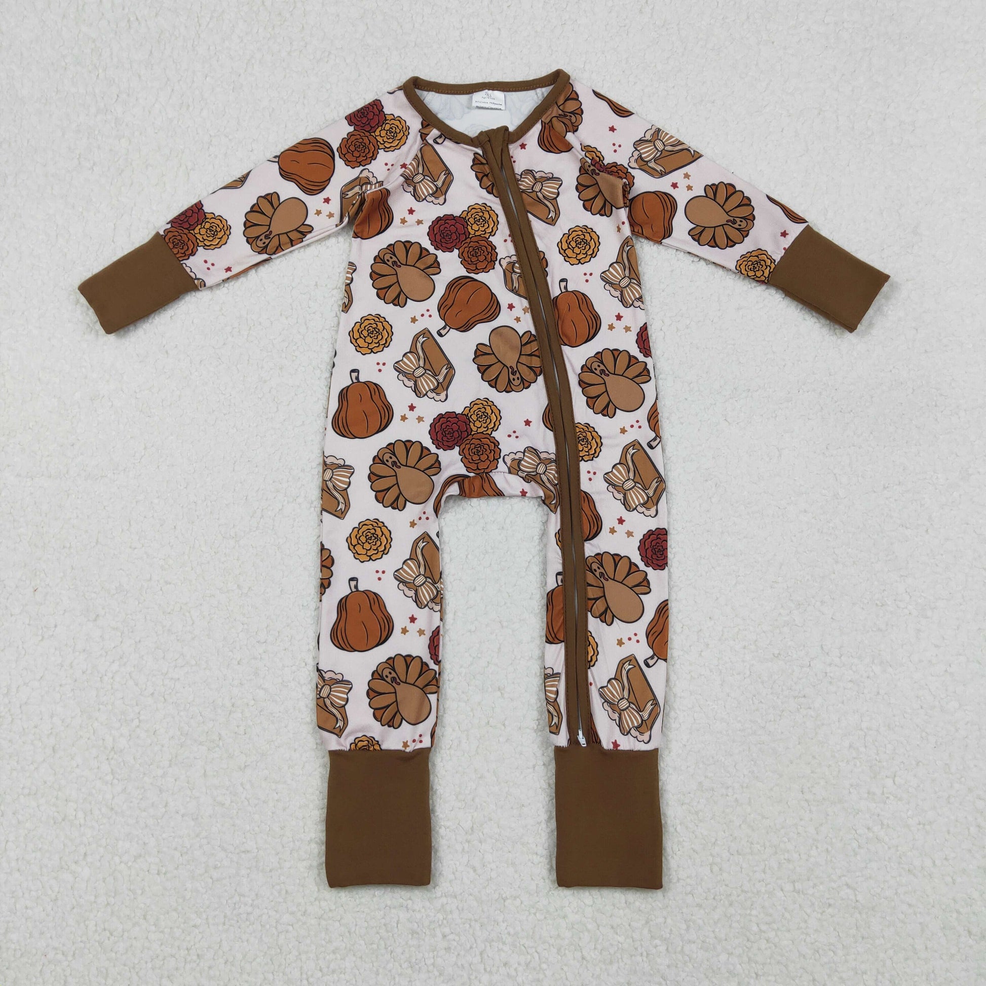 Sibling Baby Kids Turkey Pie Pumpkins Thanksgiving Two Way Zip Convertible Rompers