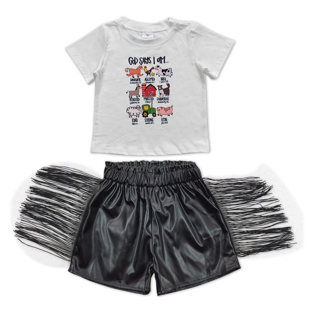 Farm White Tee Shirts tassel shorts sets GSSO0366