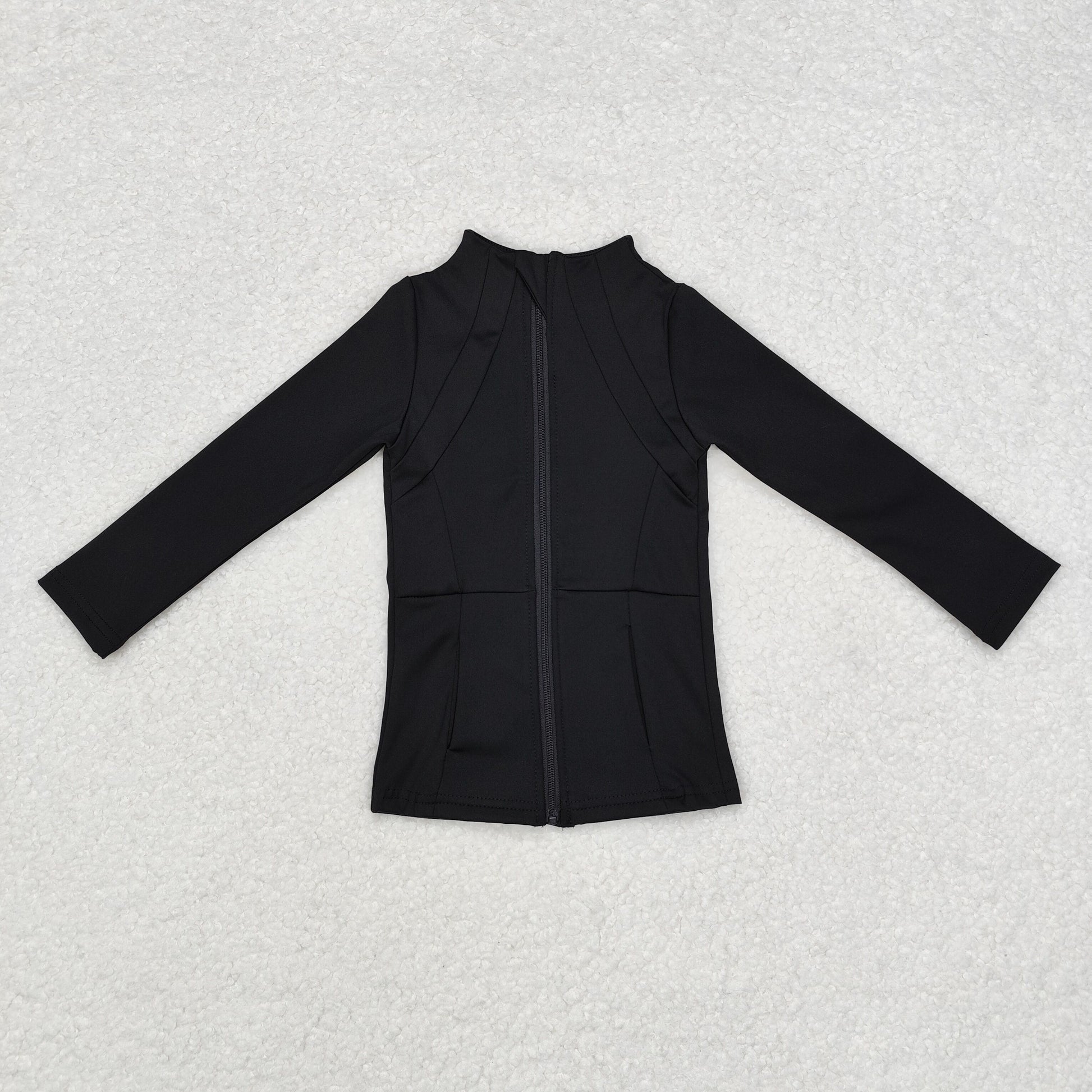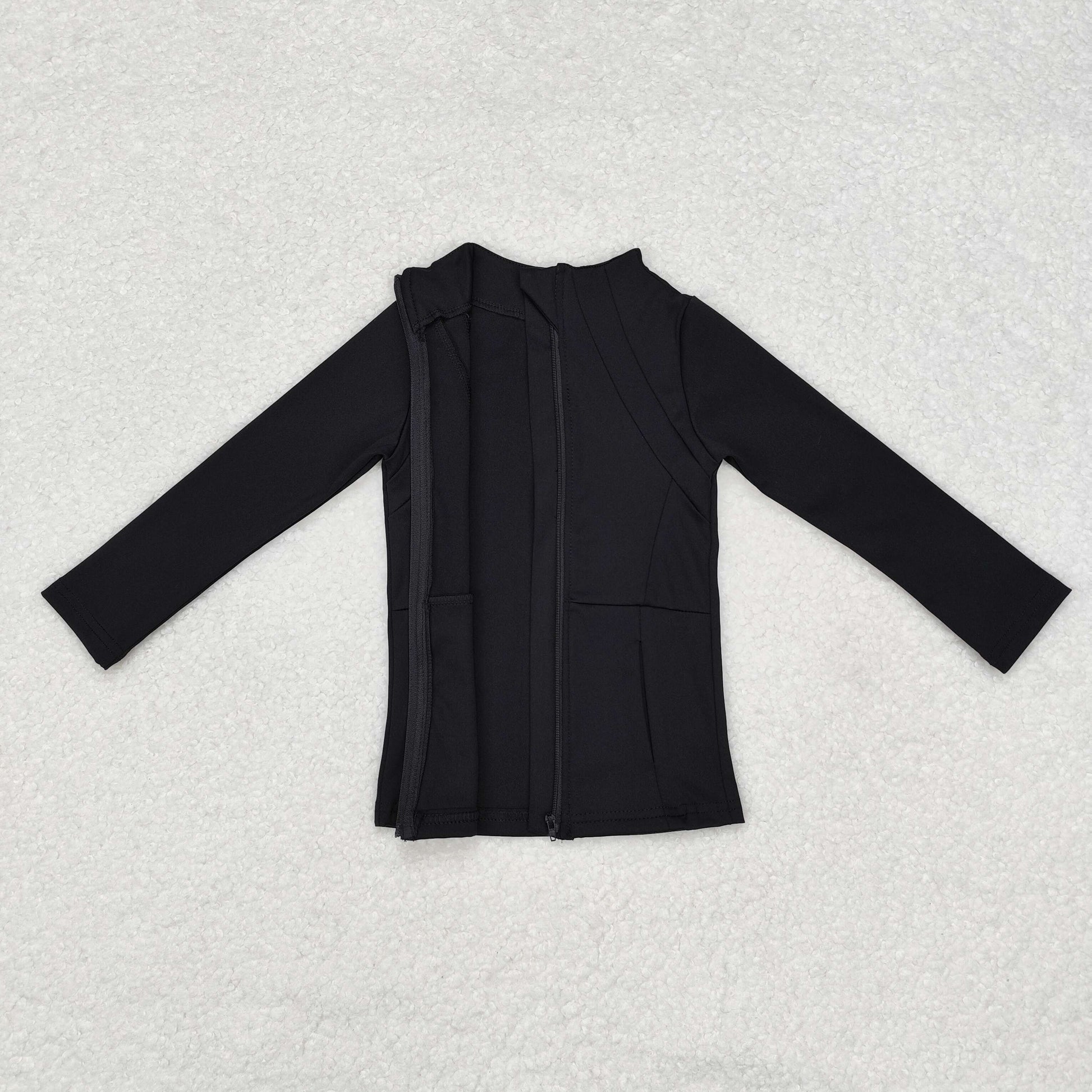 GT0685 Baby Girls Black Long Sleeve Pockets Zipper Yoga Active Jackets Top